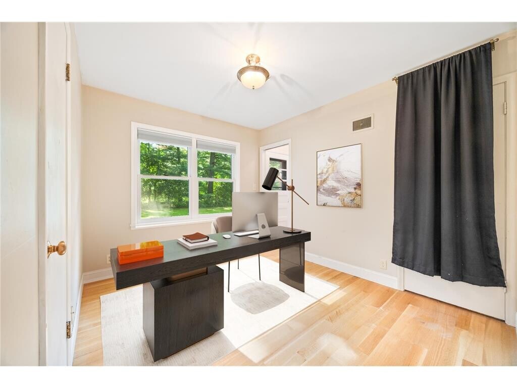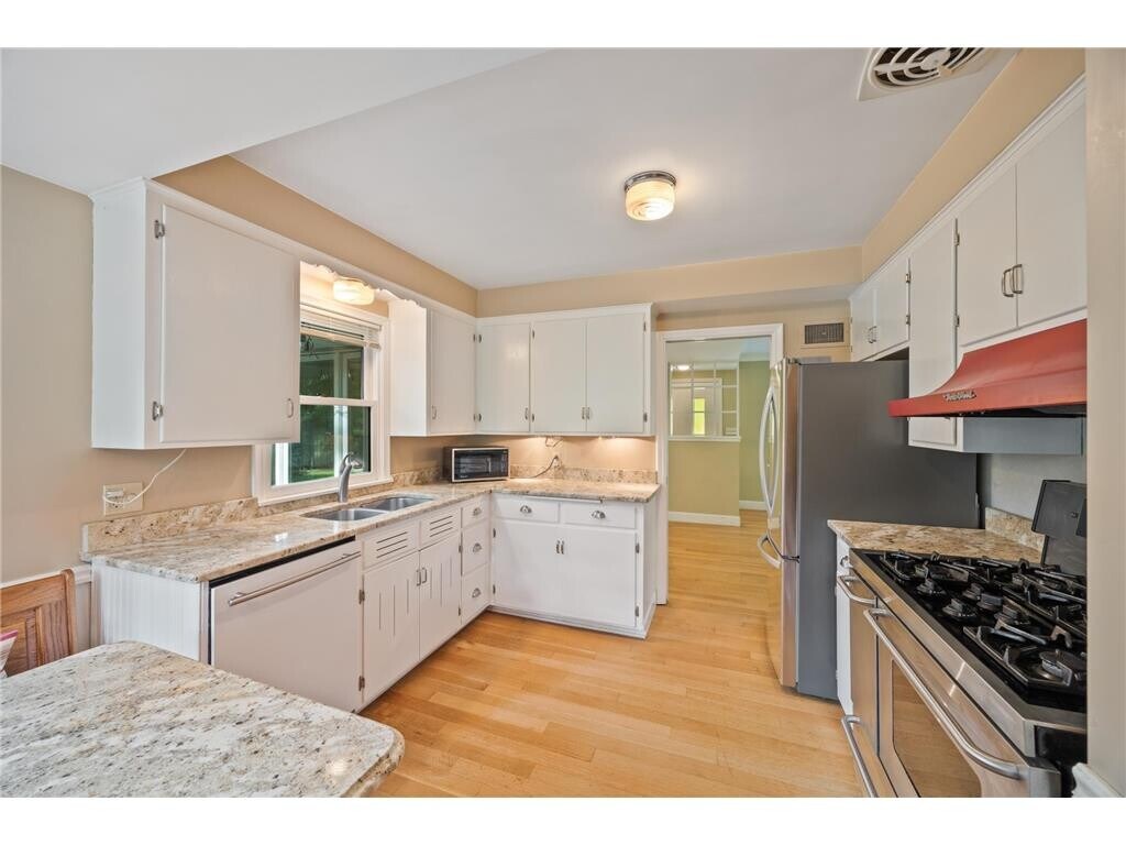 Hardwood floors thru-out, granite counters, Stainless Steel and enameled kitchen cabinets. On main floor2 bedrooms (with a 3rd bedroom potentially in a pass-through den area). The main floor full bathroom is being torn-out, down to the studs and will be fully remodeled. Surround tile in the bath / shower alcove. The tile will wrap the entirely of the bathroom and the tile floor will be heated. On the lower level are the 3rd and 4th official bedrooms. Big pantry, workshop, storage and laundry room on the lower level. The fourth bedroom and full bathroom are newly remodeled areas. The lower bathroom has surround tile bath / shower alcove, porcelain tub, hanging wall vanity, heated tile floors. Most of the home has been painted Agreeable Gray. All original windows in the home have been replaced. Can lighting throughout the basement. Expansive deck with newer maintenance free decking. Settling in for a movie night, the 2 fireplaces make a cozy addition (Chimneys are not warranted. Tenant is to inform landlord if they intend to use the fireplaces and would be responsible for professionally cleaning the chimneys upon lease end). In the backyard is a 34' x 32' sport court with a Gorilla basketball hoop and3-point line, fire-pit and sand box. The large grand lot offers privacy. Walk to parks, trails and coffee in the Mills. Don't feel like cooking, treat yourself to a stroll and dine at the pizza/wine bar or a second restaurant with delicious Korean Bar-B-Que meal options. No Zillow Background Checks allowed. Renters insurance required. Two full Bathrooms were remodeled and a fourth lower level bedroom and hallway added. The project is now getting cleaned up. View now to quickly secure the home.
