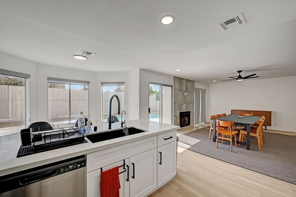 Discover the perfect blend of luxury and lifestyle in this fully furnished 4-bedroom, 2.5-bath home nestled in the heart of The Lakes—one of Las Vegas’s most sought-after communities. Enjoy year-round recreation with a scenic private lake ideal for kayaking and paddleboarding, surrounded by lush walking trails, tranquil ponds, multiple parks, and a charming duck refuge. This elegant home features a private pool and spa, perfect for relaxing or entertaining in your own backyard oasis. Step inside to find a bright and airy interior with luxury vinyl plank flooring throughout, a gas fireplace accenting the spacious living room, and stylish finishes at every turn. The modern kitchen boasts crisp white shaker cabinetry and sleek quartz countertops, while the primary suite includes a spa-inspired bathroom with a fully tiled shower and a black-framed glass slider, combining timeless design with contemporary flair. Located just minutes from Downtown Summerlin, Red Rock Casino, restaurants, and retail, this home offers both serenity and convenience. A truly rare opportunity to lease in an established community with a vibrant outdoor lifestyle. [Base rent-$3100,pool cleaning-$150,solar-$150]