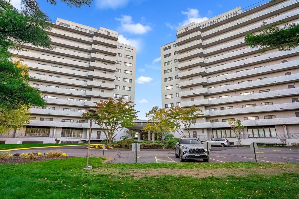 This unit on top floor of desirable, full service, high rise in gated complex on Fairfield line. The primary bath has been remodeled to include a large shower, Corian topped vanity with double sinks, great storage and a marble floor. A second bedroom with double closets provides a built-in desk area with bookshelves. A hall bath with marble floor features a tub/shower combo and Corian topped vanity. This unit comes with a storage closet just outside the unit, a storage cage on the 1st floor, a great parking space in an underground garage and space in gated parking lot. The Inwood features a 24 hour doorman, heated pool, pool house, exercise room, sauna, lounge/library, party/card room, art room, and billiards/table tennis room. Great lifestyle- this one won't last!! See supplements for list of improvements. Feel like you are living in a penthouse in this spacious unit which features soaring ceilings in the open plan living/dining rooms. The fabulous views of the city and LI Sound are even better when you step through the sliders from the LR/DR to a 24 foot balcony where you can enjoy morning coffee, an evening libation or multiple fireworks displays on holidays. A remodeled eat-in-kitchen features a hardwood floor, granite counters, stainless appliances, cabinets with pull-outs, access to the balcony and laundry room. A very spacious primary suite boasts a bedroom with high ceilings, gorgeous tree-top views, three closets, including a walk-in and a full bath.