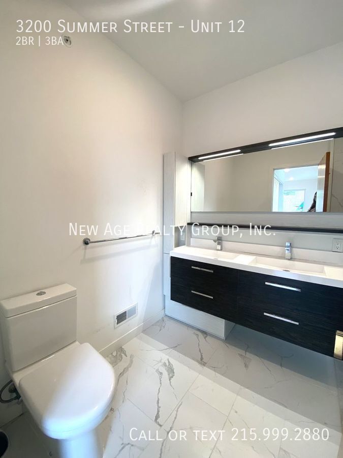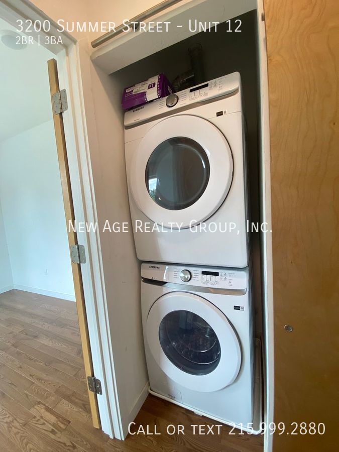 Welcome to 3200 Summer Street in Philadelphia, PA! This charming house features 2 bedrooms and 2.5 bathrooms, perfect for those seeking a cozy yet modern living space. Enjoy the convenience of a washer/dryer, central heat/AC, built in microwave, and a dishwasher for easy living. The highlight of this home is the rooftop deck, ideal for watching 4th of July fireworks. The gas stove adds a touch of luxury to the kitchen, making meal preparation a breeze. Don't miss out on the opportunity to make this house your new home! Tenants responsible for gas, electric and water. Tenant must obtain renter's insurance Please note: this is a condo with a home owner association and they are not able to rent to undergrad students. All New Age tenants will be automatically enrolled in a Resident Benefits Package (RBP) for $25 per month, which includes $5k in property damage reimbursement, credit building through timely rent payments, a resident rewards program, and so much more! These benefits are designed to improve your living experience and put money back into your pockets. All information about this package can be found at
