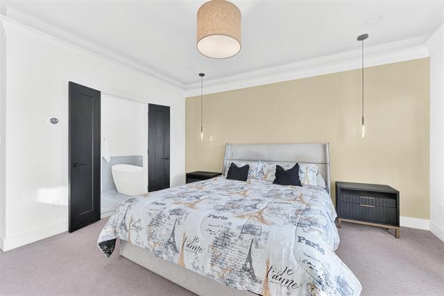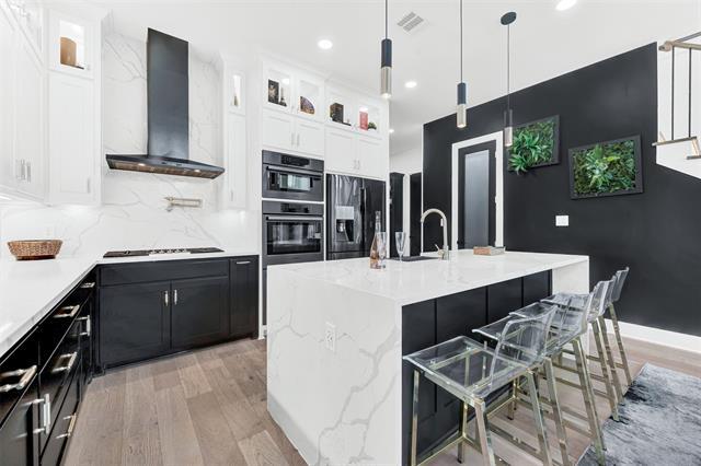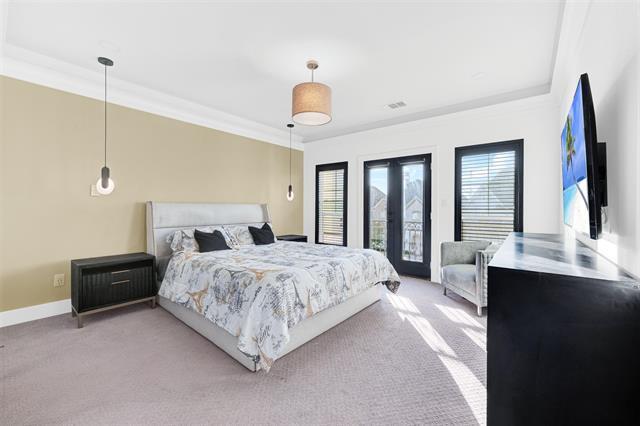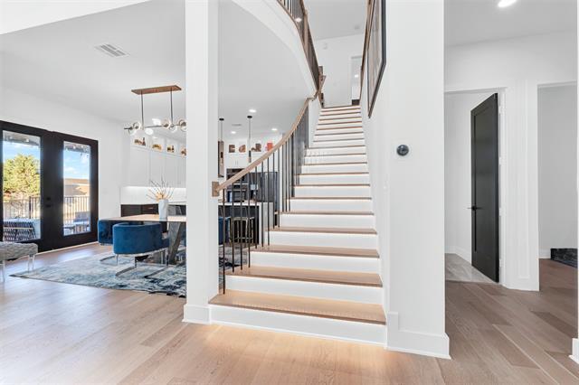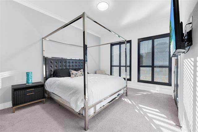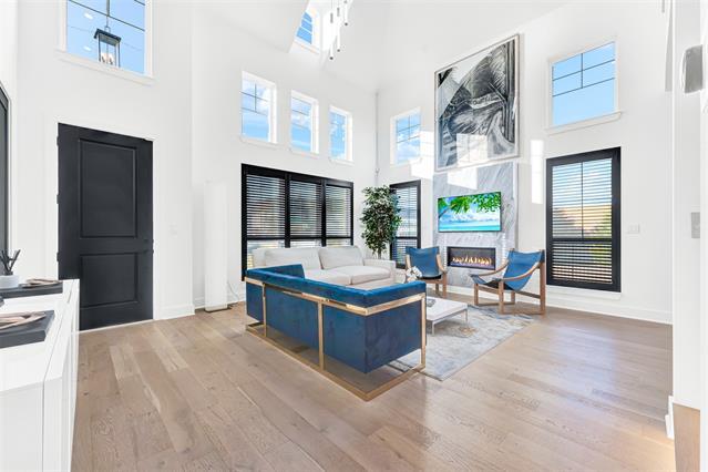 One-of-a-kind custom luxury home available for lease in West McKinney, situated on the largest corner lot in the community and not a spec home. Designed for refined executive living, this residence offers high-end finishes, privacy, and a quiet interior setting. High ceilings, abundant natural light, designer lighting, engineered hardwood flooring throughout both levels, solid-core doors, 6-inch baseboards, and custom shutters showcase elevated craftsmanship. Modern gas fireplace features a dramatic floor-to-ceiling marble surround. Exceptional floor plan includes two primary suites—one downstairs and one upstairs—ideal for executive or multi-generational living. Both primary suites feature quartz countertops, and frameless glass showers, while the main-level primary retreat offers a private balcony, spa-inspired bath with freestanding soaking tub, and walk-in closet with sensor lighting. Secondary bedrooms include custom closets and plush carpet with premium padding. Chef’s kitchen highlights custom soft-close cabinetry with glass-front uppers, quartz countertops and backsplash, farmhouse sink, pot filler, expansive walk-in pantry with outlets, Fulgor Milano gas range with vent hood, and Bosch double ovens including convection microwave. Refrigerator, washer, and dryer included. Upstairs living spaces include game room loft, dedicated media room, and a quiet pocket office ideal for working from home. Additional features include mudroom, EV fast-charging outlet in garage, attic storage with subflooring, solar panels, and optional furnished lease availability. Outdoor living offers a private side-yard patio with pergola, built-in misters, gas grill line, and gated front entry with iron fencing. HOA maintains yard care and sprinkler system for low-maintenance living. Walk to Gabe Nesbitt Park and Apex Aquatic & Fitness Center, with quick access to shopping, dining, and Hwy 121. Zoned to highly rated Frisco ISD schools. Move-in ready luxury lease.