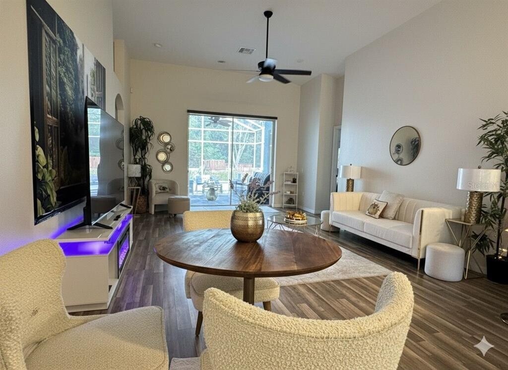 Welcome to easy living in this beautifully furnished 4-bedroom,3-bath home — move-in ready and designed for comfort. Your monthly rent includes sewer,high-speed internet,trash service,HOA fees,and taxes,giving you a stress-free lifestyle with no surprise bills. Sitting on a private lot with no rear neighbors and a fully fenced backyard,this property offers peace,privacy,and plenty of outdoor space. Enjoy an open,light-filled layout with a 3-way split bedroom floor plan,allowing everyone their own space and privacy. The kitchen features sleek stainless-steel appliances and plenty of room to cook and entertain. For added peace of mind,the home is equipped with a live-view security camera. Entertainment is everywhere: the home includes 5 mounted TVs located throughout the interior and even outside on the patio. Relax around the electric fireplace in the living room or unwind on the covered back porch — perfect for morning coffee,evening conversations,or weekend gatherings. The location couldn’t be more convenient — minutes to Publix and other essential shopping,close to Brandon Mall,Top Golf,Bass Pro Shops,plus easy access to the Selmon Expressway & I-75. Downtown Tampa is less than 15 minutes away,making work or nightlife an easy trip. This is a true turnkey rental offering comfort,convenience,and style — just bring your suitcase and feel right at home. Schedule your tour today! MLS# TB8443773