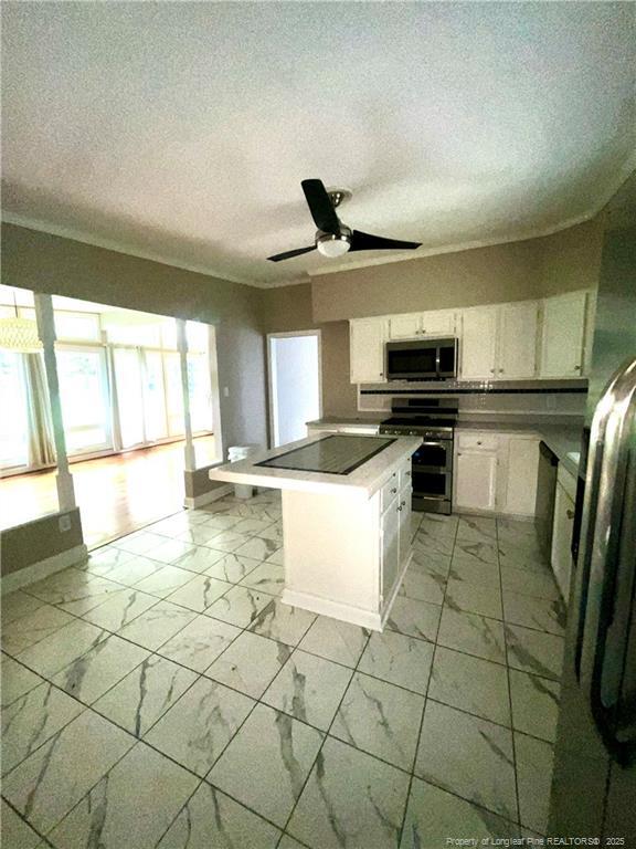 Welcome to 3202 Cluny Drive Fayetteville, located in the desirable McPherson Estates. This stunning 3-bedroom, 2.5-bathroom home is brimming with modern amenities and recent updates throughout. Step into a spacious foyer that leads to a formal living room, bathed in natural light from large windows. The great room boasts a cozy fireplace with gas logs and built-in shelving, perfect for displaying your favorite books or decor. The kitchen is a chef's dream, complete with a convenient island, stainless steel appliances, and ample storage. Each room is equipped with ceiling fans and smoke alarms for your comfort and safety. The home also features hardwood flooring, vaulted ceilings, and window treatments-blinds that add a touch of elegance. The half bathroom doubles as a laundry room, though the washer and dryer are not warranted. Outside, you'll find a charming front porch and a rear patio enclosed by a fence, ideal for outdoor entertaining. A double-car garage provides plenty of space for vehicles or additional storage. Lawn maintenance is included with the rent, providing you with more time to enjoy your new home. Experience the best of Fayetteville living at 3202 Cluny Drive.