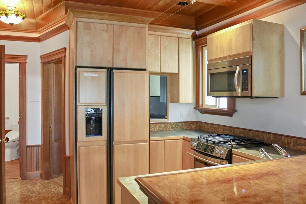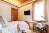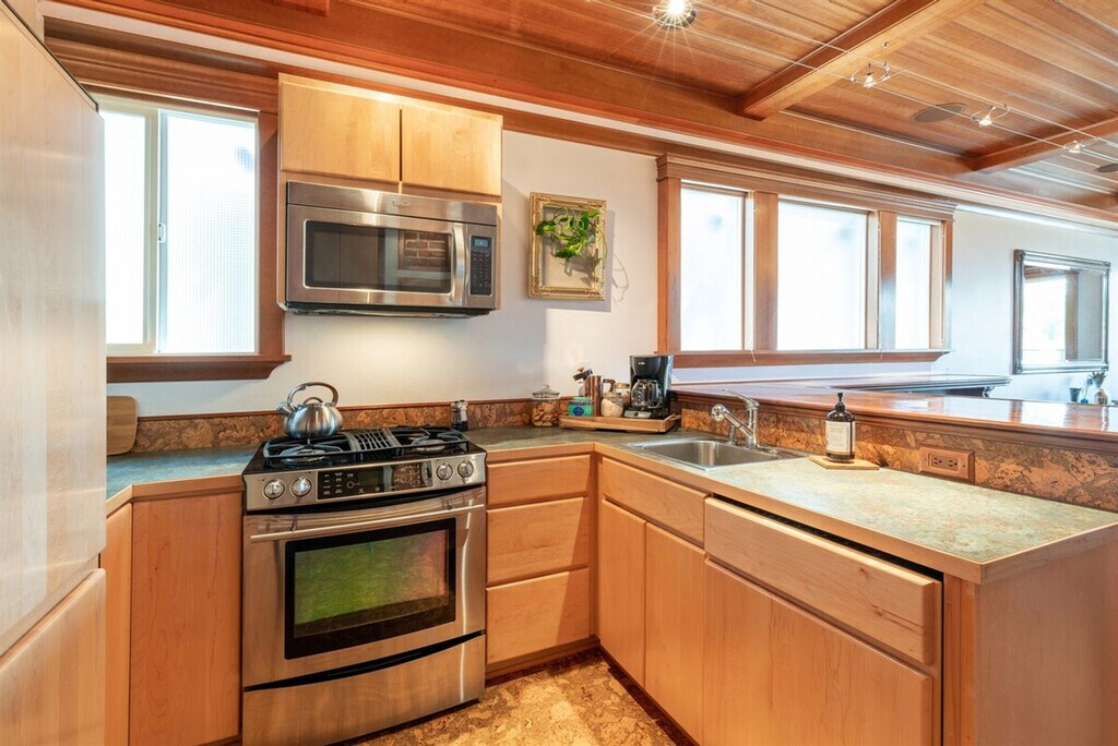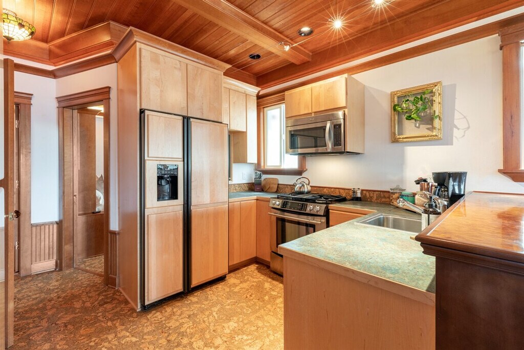 Step into the past with modern luxury at this gorgeous 1912 Victorian home located right on 6th Ave in Tacoma's vibrant Sixth Avenue District. Fully renovated with custom woodwork, shiplap ceilings, and cork flooring throughout, this home blends timeless charm with upscale living. Whether you're here for a few days or a few weeks, it’s the ultimate place to experience Tacoma in style. The property is surrounded by lush greenery and aged bamboo, offering a unique experience overall. Walking into this majestic 1912 built home is an experience all in itself. Shiplap ceilings, a built-in saloon-style bar, and custom appliances make this home memorable for anyone who stays. Enjoy cork flooring throughout, a gas Jenn-air range, and a GE profile double-sided fridge. Both bedrooms have custom-built Queen beds with plush mattresses and Hotel Collection linens. The second bedroom includes a personal wall-mounted smart TV. The living area features a unique bar-style setting with a 10-foot Restoration Hardware sofa, captain chair bar stools, and a 55” Smart TV. There is a dining area for four overlooking 6th Ave. Parking is free street parking surrounding the home with zoned two-hour parking from 8 am to 6 pm. There is also free unzoned open residential parking on the block behind, on 7th Ave. Located in the heart of the Sixth Avenue District, this home is steps away from all the excitement 6th Ave has to offer. The home has tripled glaze windows and additional sound-barring walls to keep the city noise out, yet you are close to all the vibrant attractions. One bedroom backs to a 7-11, which can produce city noise. The second bedroom is private, quiet, and serene. The home has a permanent tenant upstairs with completely separate entrances and living spaces. Remote access entry is available. [SI]