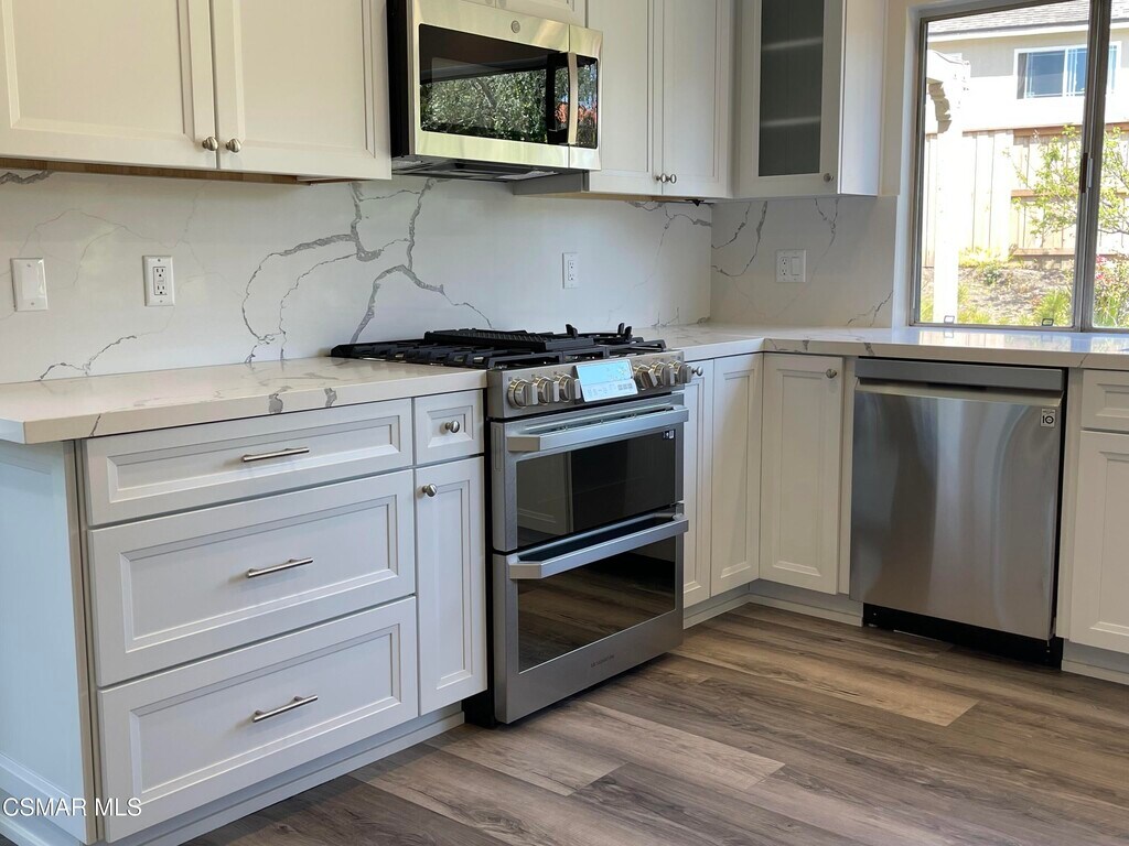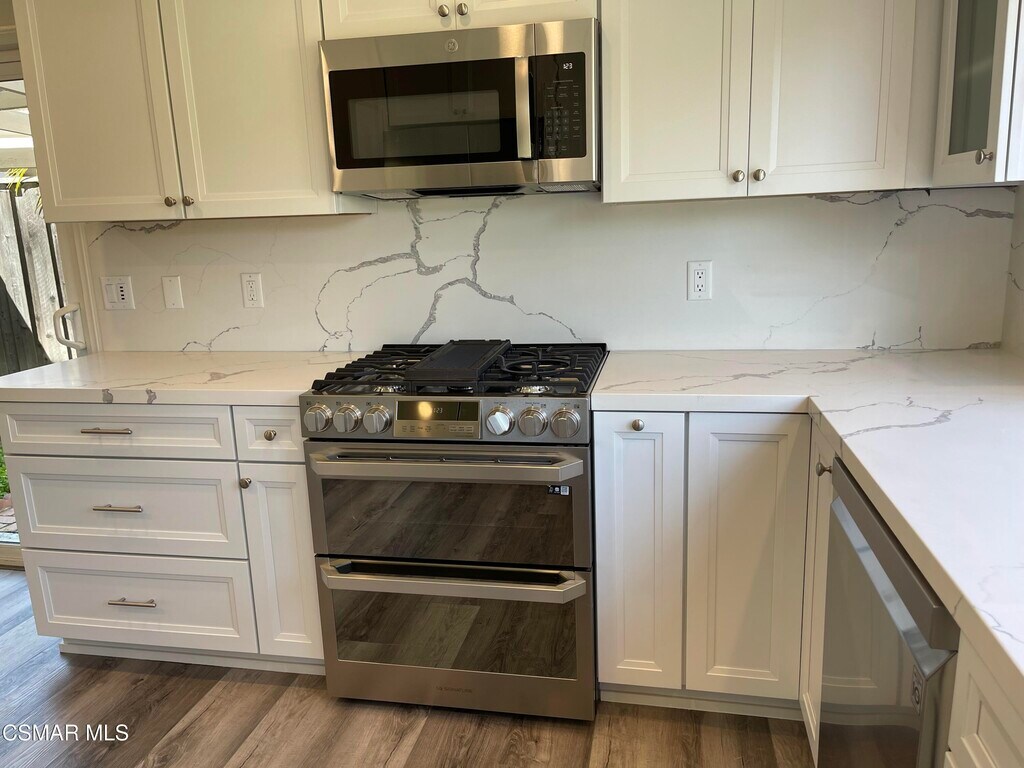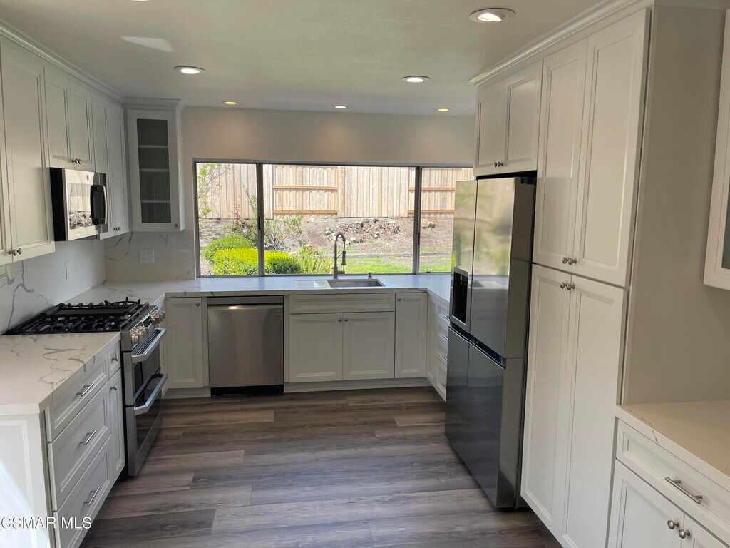 Welcome to this stunning two-story home in the highly desirable First Neighborhood of Westlake Village.This beautifully maintained residence features a fully remodeled kitchen with quartz countertops, soft-close pull-out cabinetry, and stainless steel appliances--perfect for those who love to cook and entertain.The home offers luxury vinyl flooring throughout, custom designer paint, and a flexible floor plan. All bedrooms are located upstairs, providing privacy and comfort. Owners are currently in the process of completely renovating both the Primary bath and the Secondary bath. Both baths will have dual sinks, new showers and new floors. Downstairs, you'll find a spacious family room complete with a cozy gas fireplace and a built-in wet bar--ideal for relaxing evenings or gathering with guests.Step outside to your own private backyard retreat, highlighted by a tranquil pond and cascading waterfall--a peaceful setting to unwind after a long day.As part of the First Neighborhood community, you'll also enjoy access to fantastic amenities including a sparkling community pool, lush greenbelts, and beautifully maintained common areas.Additional features include a three-car garage with a utility sink, gardener service included for added convenience.Available now--don't miss this opportunity to lease a beautiful home in one of Westlake Village's most sought-after neighborhoods!Some photos have been virtually staged.Property will be ready December 1, 2025!Please apply at the following link: