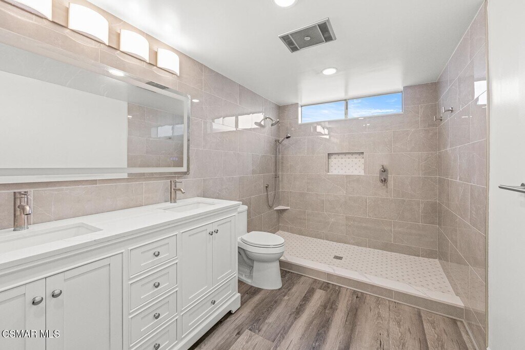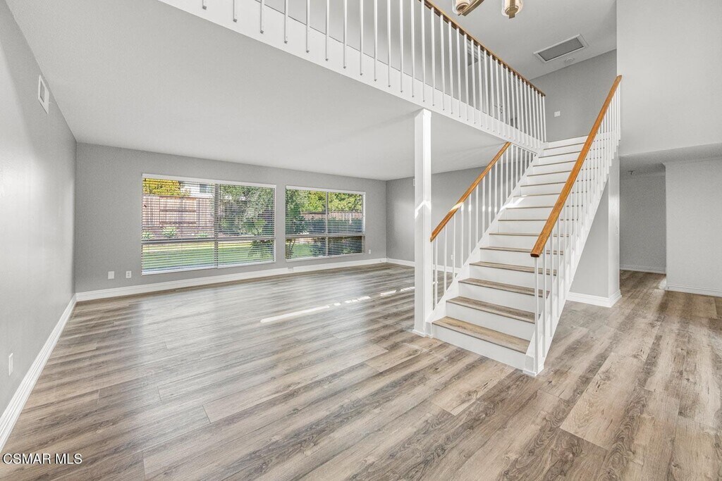 Welcome to this stunning two-story home in the highly desirable First Neighborhood of Westlake Village.This beautifully maintained residence features a fully remodeled kitchen with quartz countertops, soft-close pull-out cabinetry, and stainless steel appliances--perfect for those who love to cook and entertain. In addition, both upstairs baths have been completely remodeled with dual sinks in both as well as beautiful finishings. The home offers luxury vinyl flooring throughout, custom designer paint, and a flexible floor plan. All bedrooms are located upstairs, providing privacy and comfort. Downstairs, you'll find a spacious recreation room complete with a cozy gas fireplace and a built-in wet bar--ideal for relaxing evenings or gathering with guests.Step outside to your own private backyard retreat, highlighted by a tranquil pond and cascading waterfall--a peaceful setting to unwind after a long day.As part of the First Neighborhood community, you'll also enjoy access to fantastic amenities including a sparkling community pool, lush greenbelts, and beautifully maintained common areas.Additional features include a three-car garage with a utility sink, gardener service included for added convenience.Available now--don't miss this opportunity to lease a beautiful home in one of Westlake Village's most sought-after neighborhoods!Some photos have been virtually staged.