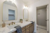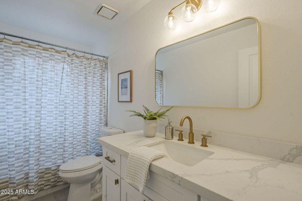 Newly remodeled 3 bed, 2 bath offers fresh interior paint that complements the refreshed neutral flooring. The spacious great room flows seamlessly into the kitchen, perfect for entertaining or everyday living. The kitchen has been thoughtfully updated w/ new cabinets, quartz countertops, & stainless steel appliances. The primary suite features a private ensuite bath complete w/ a new dual-sink vanity & a refinished tile shower surround. All bedrooms include new carpet for added comfort.