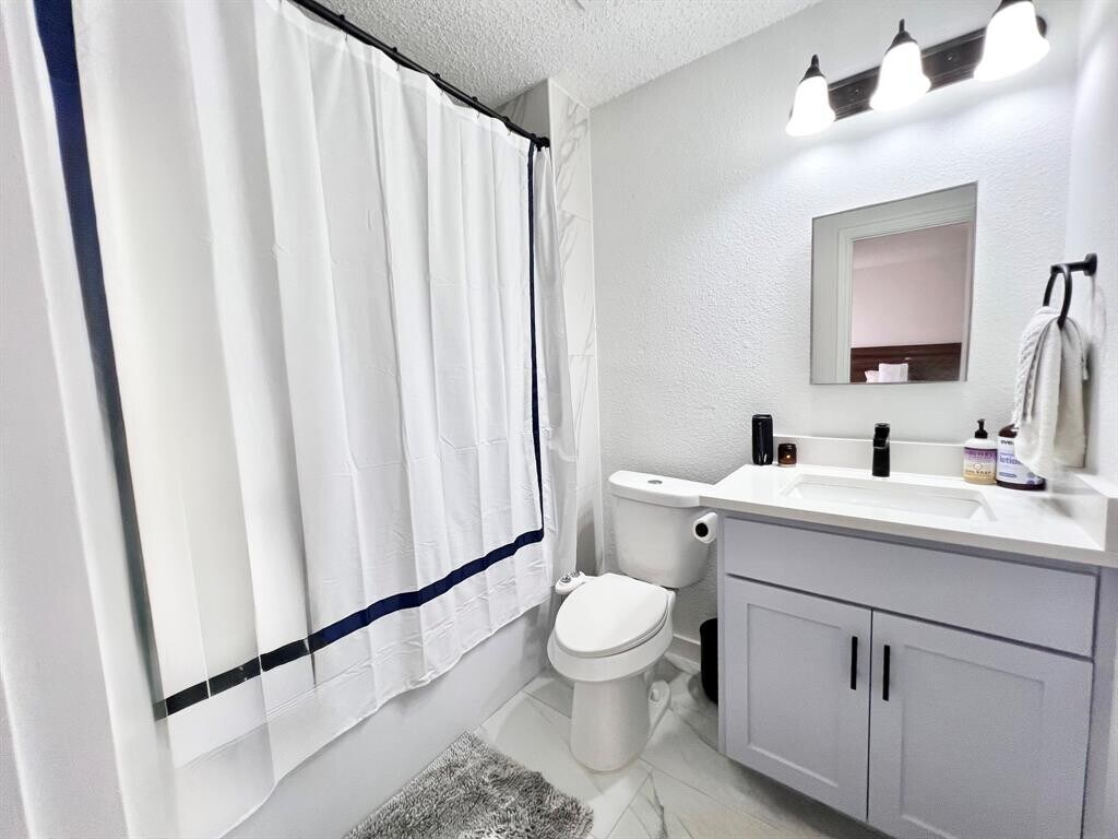 This bright and beautifully renovated home showcases thoughtful updates throughout, including new flooring, lighting, sinks, countertops, and fixtures. The kitchen features sleek white quartz countertops and opens seamlessly to the living and dining areas, creating an ideal space for entertaining. The large backyard, enclosed with a wood privacy fence, offers plenty of room for outdoor enjoyment.
