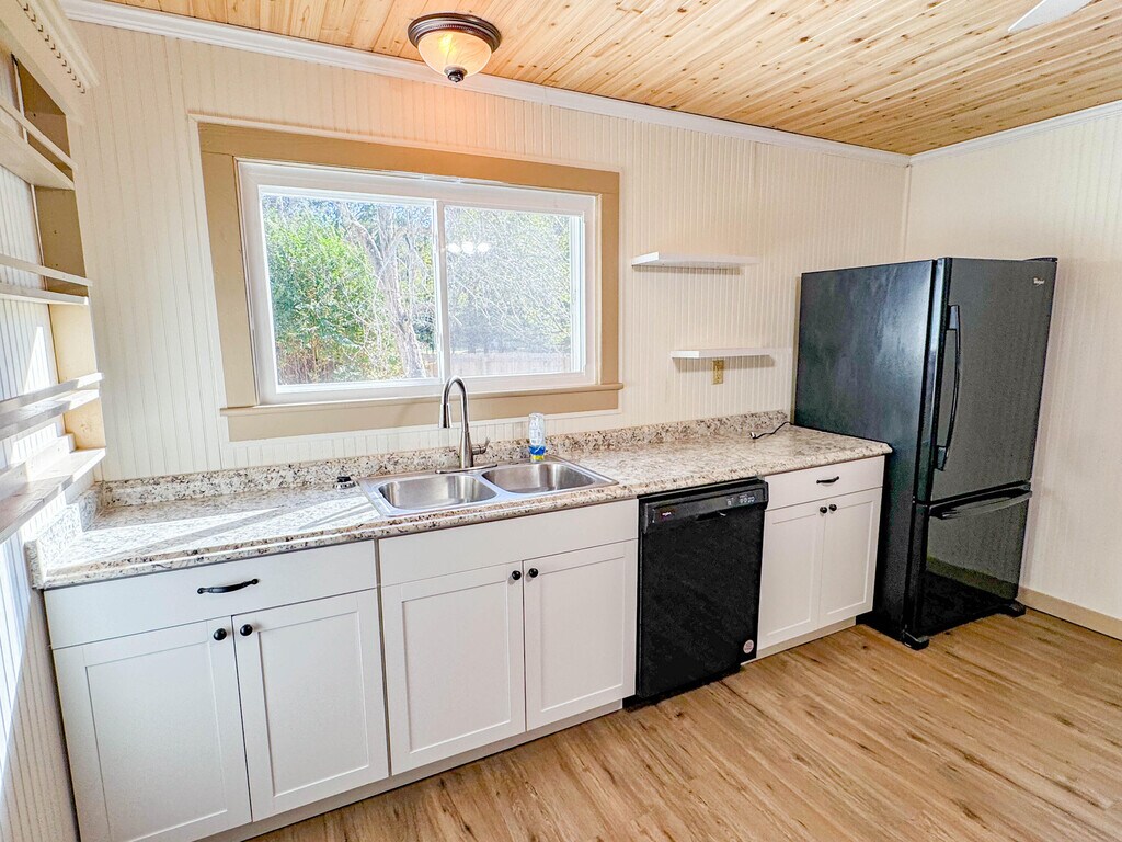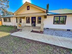 **Available NOW and PET FRIENDLY! 620 credit score and 3x gross monthly income required.**Tucked away on 2.56 peaceful acres,this beautifully updated ranch-style retreat welcomes you with a private driveway,a distinctive green metal roof,and a landscape filled with mature flowering and fruit trees—including pear,pomegranate,fig,cherry plum,and pecan trees! Inside,refinished wood floors and custom-stained trim bring warmth and timeless character to every space. A cozy sitting area with a decorative fireplace greets you upon entry,while the formal dining room—framed by rich French doors with crystal knobs—sets the tone for elegant southern living. The spacious flex room provides versatility for gatherings,a media room,or a home office. The kitchen has been completely remodeled with custom cabinetry,a built-in plate rack,new countertops,and modern appliances,blending function with classic charm. Every ceiling features hand-laid wood planks for a rustic designer touch,and both bathrooms have been tastefully renovated with beadboard walls,new vanities,and updated fixtures. This home also includes impressive modern upgrades: New HVAC system for year-round comfort Solar panels that reduce monthly power costs Fiber internet installed for fast,reliable connectivity RV hookup for convenience and guests Washer and dryer included,plus one flat-screen TV stays Water filtration system for the entire home New water heater and upgraded well bladder for irrigation Freshly painted outbuilding with matching green metal roof Beyond the main home,a cleared section of the property offers the perfect spot to build a small guest cottage or workshop. If you're looking for a home that balances craftsmanship,sustainability,and serenity,3204 Ray Owens Road offers a rare combination of comfort,efficiency,and rural beauty—just minutes from town conveniences. Verify room dimensions and schools if important.