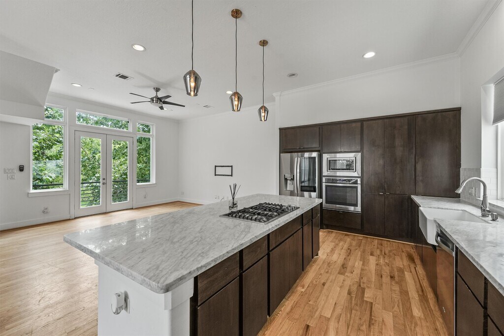 Rooftop balcony,backyard,and private driveway! This luxurious 3-bedroom,3-1/2 bathroom residence,featuring a stunning rooftop balcony overlooking downtown is now available for lease. The open concept living area seamlessly connects the living room,dining space,and kitchen,creating a perfect setting for entertaining. The expansive windows flood the space with natural light,creating an inviting and warm atmosphere. The three bedrooms offer comfort and privacy,each with its own en-suite bathroom and walk in closets. The primary bedroom is a true retreat,boasting a luxurious bathroom complete with an extra large soaking tub,a walk-in shower,and double vanities. Step outside to the top floor and be captivated by panoramic vistas of the downtown skyline. With its prime EaDo location,your steps away from the new East River development and just moments away from the city's finest restaurants,shops,and entertainment venues. Schedule your appointment today! MLS# 23865508