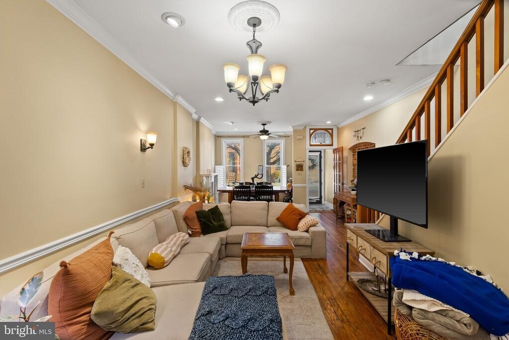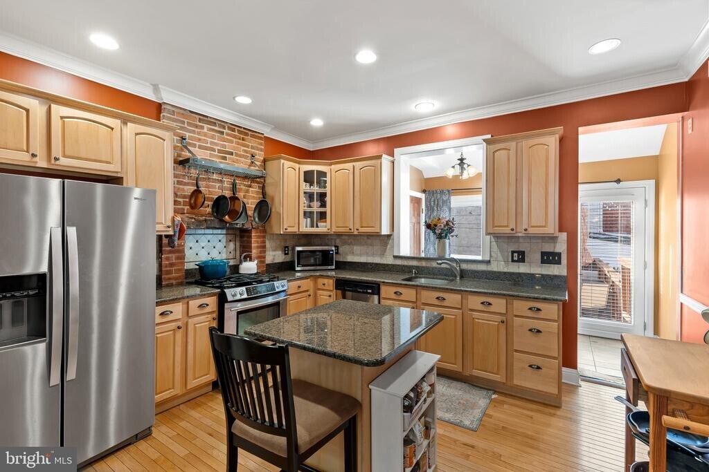 AGENTS: Application accepted 3/18 - Charming brick townhouse offering 2 bedrooms, 2.5 bathrooms, and 1,440 finished sqft, now available for lease in vibrant Canton. A welcoming foyer opens to the open-concept main level, where rich hardwood floors flow seamlessly through the living room, dining area, and kitchen. The living space is full of character, featuring a decorative fireplace, an exposed brick arched accent wall, and classic chair railing, while elegant architectural columns create a subtle transition into the gourmet eat-in kitchen. Designed for both style and function, the kitchen includes a center island, upgraded countertops, stainless steel appliances, a stylish backsplash, and additional exposed brick. A pass-through window connects the kitchen to a bright and versatile bonus area, complete with a convenient powder room and direct access to the private rear deck. Upstairs, the second level offers two comfortable bedrooms and two full bathrooms. The primary suite features hardwood floors and a private ensuite bath, while the second bedroom is finished with plush carpeting. Skylights fill the hallway with natural light and highlight a versatile flex space—ideal for a home office, reading nook, or cozy sitting area. The lower level provides ample storage and the opportunity to customize the space to suit your needs, along with laundry facilities for added convenience. Located in Canton, one of Baltimore’s most desirable waterfront communities, residents enjoy tree-lined streets, charming historic homes, lively restaurants and cafés, waterfront parks, and easy access to Canton Square, the Inner Harbor, and major commuter routes.
