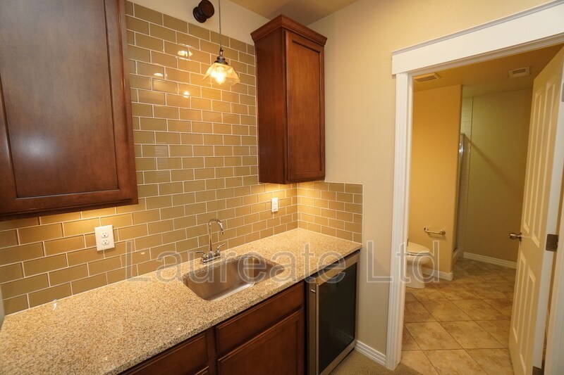 Pretty and perfect! Cozy friendly front porch with swing. Great curb appeal. Terrific floor plan with 3 bedrooms 2 baths on the upper level. Nicely upgraded with granite tile counter tops fireplace surround, oak floors on the main level, wood cabinets, black appliances, breakfast bar in kitchen. Fantastic professionally finished basement with the same quality finishes as the upper levels includes a charming bar area with slab granite counter, glass tile wall, 42" wood cabinets, stainless steel sink, beverage refrigerator. Also a lovely 3/4 bath and guest bedroom. Spacious vaulted master bedroom with 5-piece bath and walk-in closet. Upper level laundry area. Superb location on a quiet street within easy walking distance to the future town center, Bluff Lake, Recreation Center, pools, parks, schools. There is nothing to do but move into this beauty!