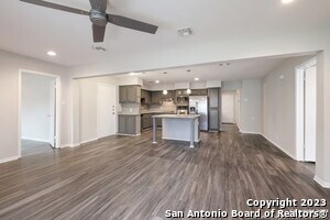 ~Beautifully remodeled home w/an open floor plan~Freshly painted interior, new vinyl plank flooring~Granite countertops, stainless appliances, including refrigerator, rich wood cabinetry~Custom built kitchen island with seating space~Master bedroom boasts a gorgeous bath with walk in shower & Barn door!~Spacious 4th Bdrm could be used as a game room/study~Close to I-10/410~Easy access to the Rim/La Cantera, Fiesta Texas, UTSA and more!~Pets considered on a case-by-case basis~Mandatory tenant benefit package