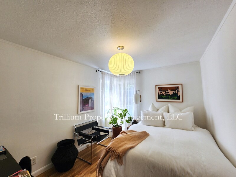 This light and bright midcentury home is at the top of Marquam hill just a few blocks away from OHSU, and just a block from the Nature Park. This is a rare opportunity. Private lot and surrounded by the forest on three sides--the location is amazing. Sweet vintage charm throughout, lovely modern fixtures, and a beautiful patio for listening to the birdsong. Central air, gas heat, newer appliances, newer paint, professionally landscaped. hardwood floors, bright corner and picture windows, truly an escape in the city. Parking for at least three cars. Landscape maintenance included. One year lease. Owner may return from a sabbatical within two years and has a relocation exemption letter. Please schedule online, and ask any questions via the company website. The complete notices, application and screening criteria are available from trilliumpdx. com If you need a remote/zoom showing please make a note of it in the appointment scheduling app. Two small pets allowed. Garbage, landscape maintenance included. Tenant pays all other utilities. No smoking on the premises Proof of renter’s liability insurance required before and during tenancy. $38 application fee per adult occupant for credit and background screening payable to screening company after application is in The Open Application Period will begin at 8 am on 1/30. Please do not enter the property without an appointment and agent. Applicants must be prepared to sign and fund a lease within two days of approval, units can't be held longer than 14 days, or availability, whichever is longer. Applications are processed in the order received, and per City of Portland regulations. All adult occupants will need to be screened, and to pay for screening, including background and/or financial depending on applicant financial consideration status. This unit is not an accessible type A unit. Briefly, they are: 2 x the rent in monthly income or 2x the annual rent in liquid funds, 3 years of positive, current, complete, rental references or mortgage history, no negatives on a credit report, reasonable verification of identity, max 20% debt to income ratio, cosigners not accepted, full first, full last, tenant liability insurance and 1/2 month's rent in security to move in.