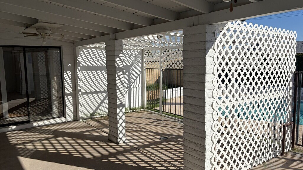 POOL HOME!!!!! One Story, 4 Bedroom, 2 Bathroom, Liv Room, Fam Room, Din Area, No Carpet , Large Back Patio with Fenced Pool, Laundry Room with WA&DR (no warranty), Refrigerator (no warranty), Desert Landscaping, 1 Car Carport & long driveway, 1590 sf. FULL POOL SERVICE