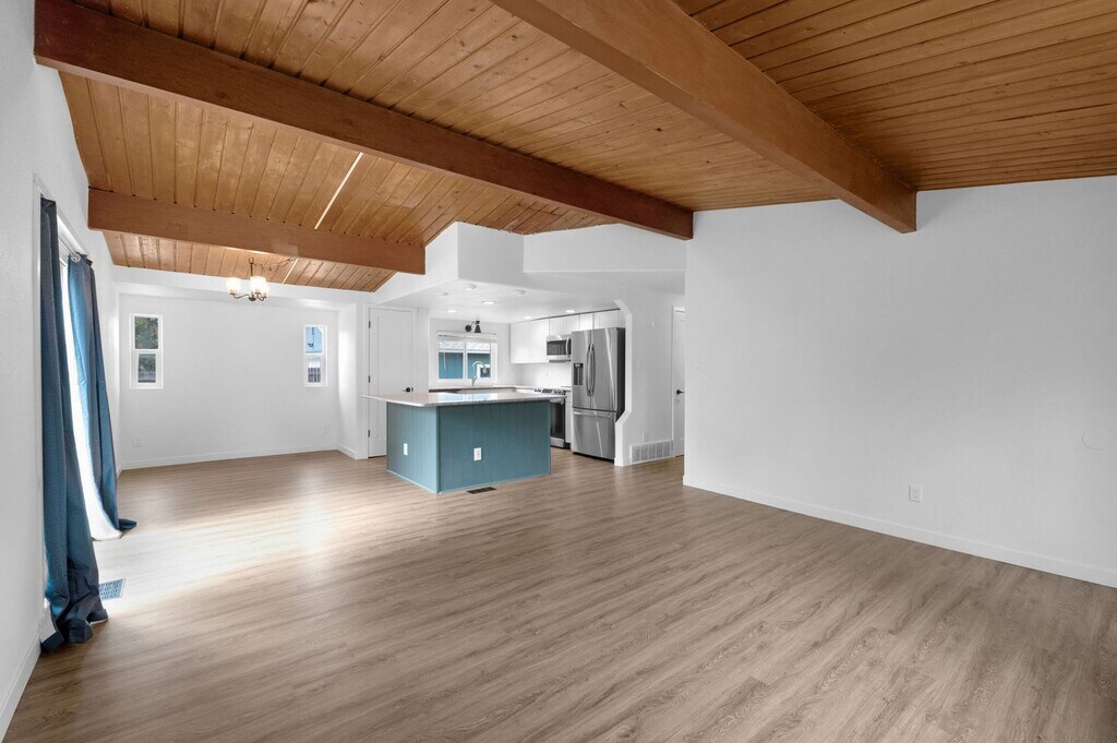 Adorable updated rancher. Open floor plan with vaulted ceilings and LVP flooring. Central AC for those hot days. Great fences in back yard with patios for great entertaining. Kitchen has lovely island with SS appliances. You are going to fall in love with all the great meals you can make. The master has a large walk in closet. Front and rear parking. Garage use not included.