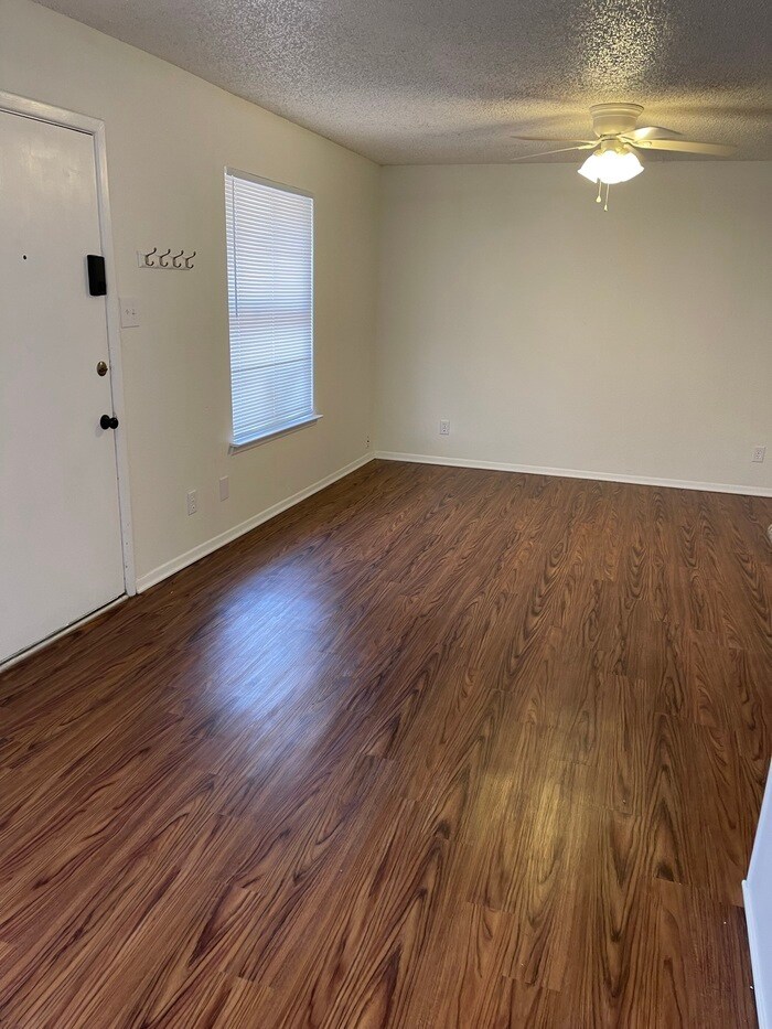Won't last. Single level, pet friendly, front-end fourplex townhome with covered front porch, 2 spacious bedrooms. open concept kitchen and living room, granite countertops; upgraded wide plank flooring, ceiling fans, central HVAC, laundry closet with hook-up for full washer and dryer. Excellent location off Baker Blvd., 12-unit complex of 3 fourplexes is right across the street from the Richland Hills Public Library and walking distance to Rosebud Park and The Link Event and Recreation Center. This property allows self guided viewing without an appointment. Contact for details.