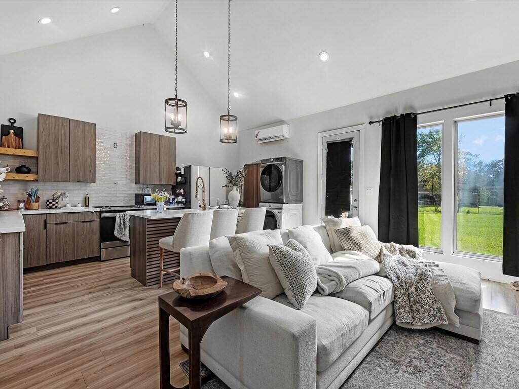 Step inside this charming rental and be captivated by the bright,airy living space with a high ceiling and large windows that flood the room with natural light. The modern,well-appointed kitchen features sleek quartz countertops,modern appliances,and plenty of cabinet storage. The spa-like bathroom boasts a luxurious rainfall shower and elegant vanity. Outside,a private patio provides the perfect spot to sip your morning coffee or entertain guests. With its location just 30 minutes from NRG Stadium and the Texas Medical Center,this truly is an amazing opportunity not to be missed. MLS# 83642715