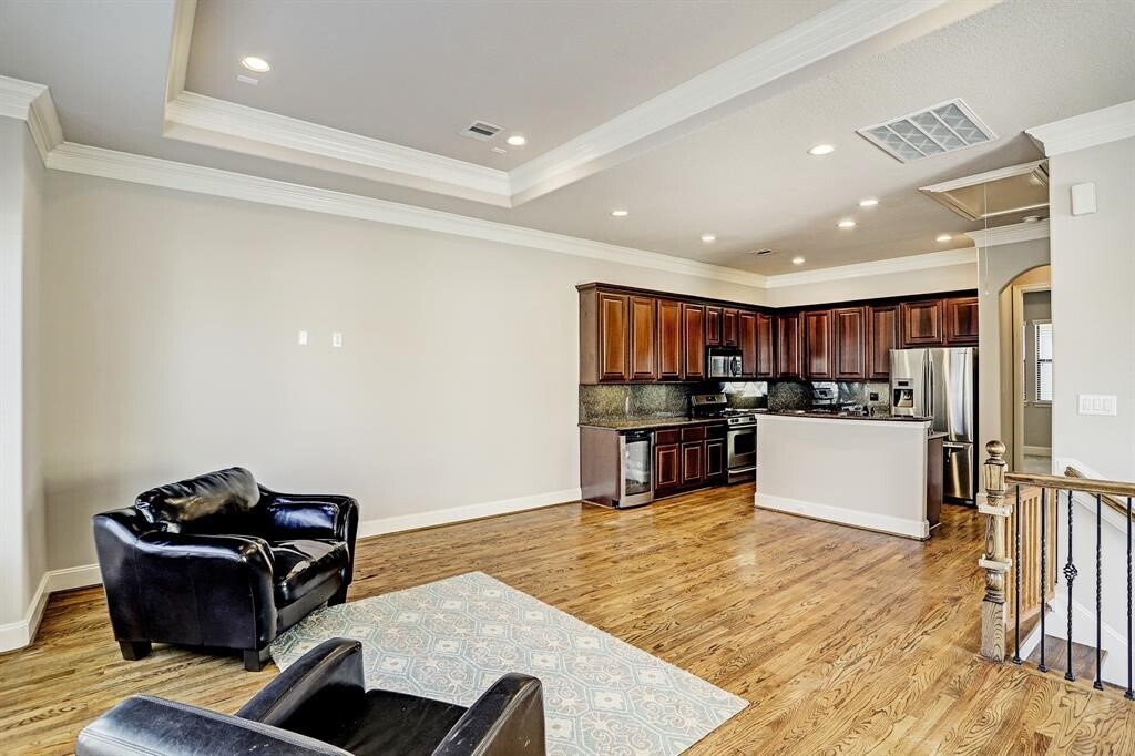 Immerse yourself in the epitome of urban luxury with this fine-crafted 2BD/2.5BA Houston townhome. From its striking,nearly all-brick exterior to its thoughtfully designed interior spaces. Downstairs offers a generously sized secondary bedroom and extra living area which leads outside to a fenced yard with a bricked patio,ideal for outdoor gatherings. Heading upstairs,you will discover a gourmet kitchen,complete with granite countertops,a center island w/breakfast bar,and stainless-steel appliances,perfect for culinary enthusiasts. Adjacent to the kitchen,the inviting living area offers a cozy retreat. Retreat to the primary suite,where tranquility awaits in the spa-like en suite bathroom featuring a soaking tub and separate shower. Additional highlights include a 2-car garage and proximity to shopping,dining,and entertainment,ensuring a lifestyle of convenience and comfort. Experience the ultimate urban lifestyle in this gated community. MLS# 2856926
