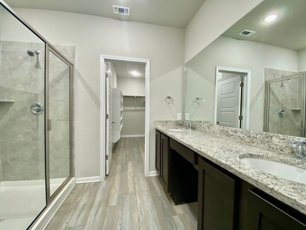 Rent ready duplex located in the Schertz-Cibolo-Universal City ISD! This spacious, newly built, home is ready for move in today! The fully equipped kitchen features granite countertops, stainless steel appliances (including a fridge), and lots of cabinet space! Primary suite is seperate from the other bedrooms allowing for some privacy. The primary bedroom showcases a beautiful vaulted ceiling and a great size walk-in closet. All three bedrooms and living room have ceiling fans. Second full bath has a tub/shower combo. Enjoy the covered patio that overlooks the fully fenced backyard. This home also features an oversized driveway and two car garage! Conveniently located close to I35, the new Cibolo HEB, and more! Super clean and ready for you to move in today.