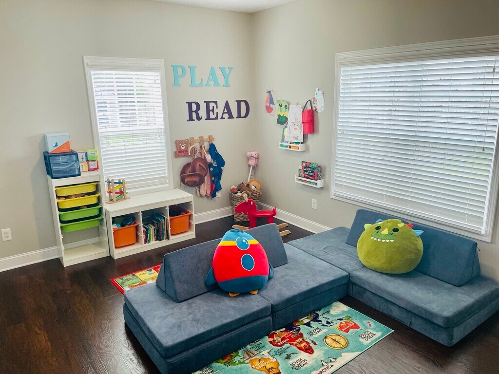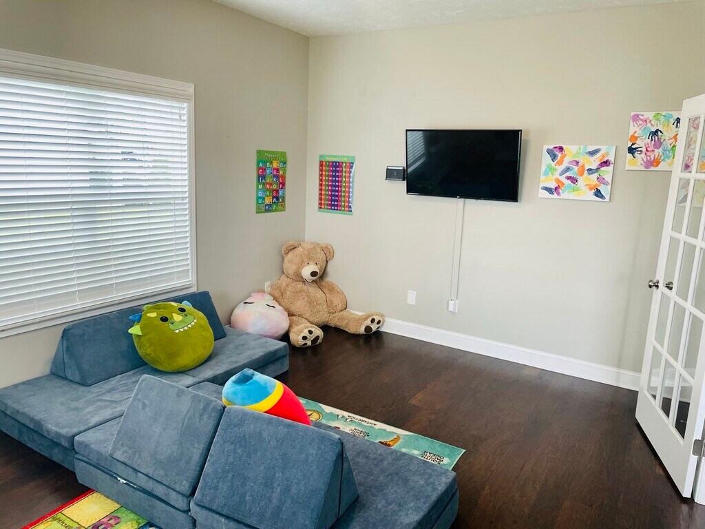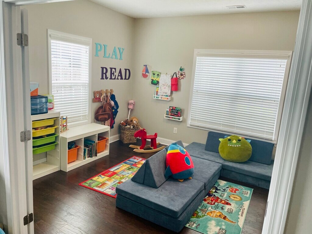 Don't miss out an this beautiful 4 bedroom, 2.5 bathroom home! Built in a great neighborhood just of town. For your convenience there is a grocery store, gas station, library and many schools close by. Neighborhood has a new basketball court, and playground in the back. This home has a spacious kitchen open to a beautiful living room. Connected to the living room is a bonus room with french doors that could be used as an office, playroom, or anything else. Upstairs features 4 nice sized bedrooms. The large Master bedroom has a ceiling fan, and a dimming light. Inside the master bathroom is a good sized walk-in closet and a walk-in attic perfect for storage. The of the front house has a 3 car garage, with pegboards on some walls for organization and a work bench for tools and things. Large backyard has an shed, a play set, a wood sandbox, beautiful garden space and a large covered patio.
