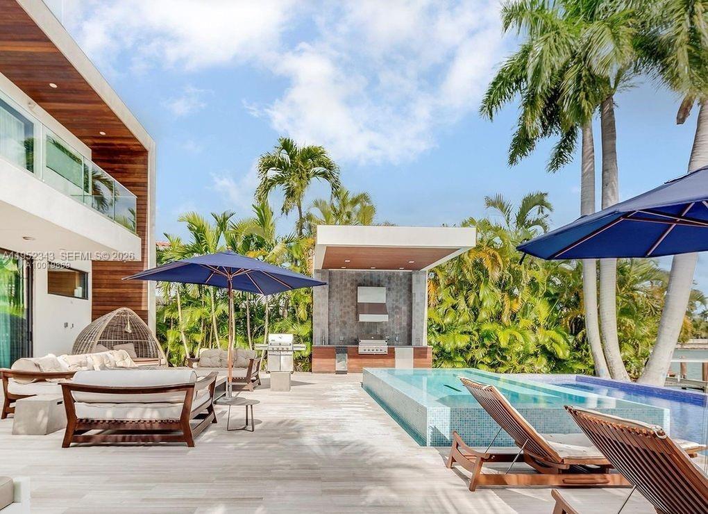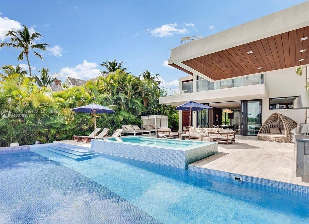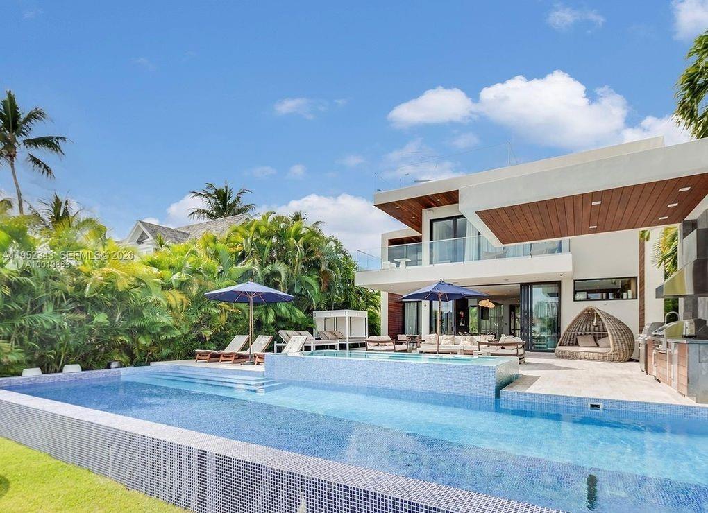 Welcome to your dream oasis in the heart of Miami's prestigious Venetian Island. This contemporary mansion boasts 4 bedrooms and 4.5 luxurious bathrooms. Step inside and be captivated by the soaring double height ceilings, with custom marble and oak flooring that bathes the entire home. this home has been meticulously designed with entertainment in mind. With a magnificent outdoor kitchen, expansive dining area, and inviting entertaining spaces, you'll create memories to last a lifetime. The house offers infinity pool and 10 people sized jacuzzi. Boaters and water enthusiasts will delight in the convenience of the boat lift and dock.Ascend the elevator to the impressive rooftop terrace, where breathtaking 360-degree views of the shimmering waters and vibrant cityscape. MLS # A11952343