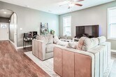 Welcome home to this charming 3-bedroom, 2.5-bath townhome with garage in the heart of Holly Ridge, just minutes from Surf City’s shopping, dining, and beautiful beaches. With easy access to Highway 17, commuting north to Camp Lejeune or south to Wilmington is quick and convenient. Step inside this bright home and pass through an arched entryway into a spacious open-concept living area—perfect for everyday living and entertaining. The adjacent kitchen offers stainless steel appliances, granite countertops, a farmhouse sink, and ample cabinetry for all your storage needs. A convenient half bath and a dedicated laundry closet with washer and dryer hookups (units not included) complete the main level. Upstairs, retreat to the expansive primary suite, featuring a large walk-in closet, dual-sink vanity, garden tub, and separate shower. Two additional bedrooms with closets and a full bath provide comfortable space for family, guests, or a home office. Enjoy relaxing summer evenings on the covered back patio, overlooking a fenced backyard with a stone walkway and cozy stone fire pit—ideal for outdoor entertaining. This inviting townhome truly offers the perfect place to call home. Pet friendly with owner approval and monthly pet rent We strive to provide an experience that is cost-effective and convenient. That’s why we provide a Resident Benefits Package (RBP) to address common headaches for our residents. Our program handles insurance, identity protection, pest control, air filter changes, utility set up, credit building, rent rewards, group rate internet, and more at a rate of $53.95/month or $68.95/month with pest control, plus $65.00 for group rate internet/month, added to every property as a required program. More details upon application. Most homes come with high speed internet up to 1 Gig at a special group rate, with premium support and setup to get you connected fast at move-on.