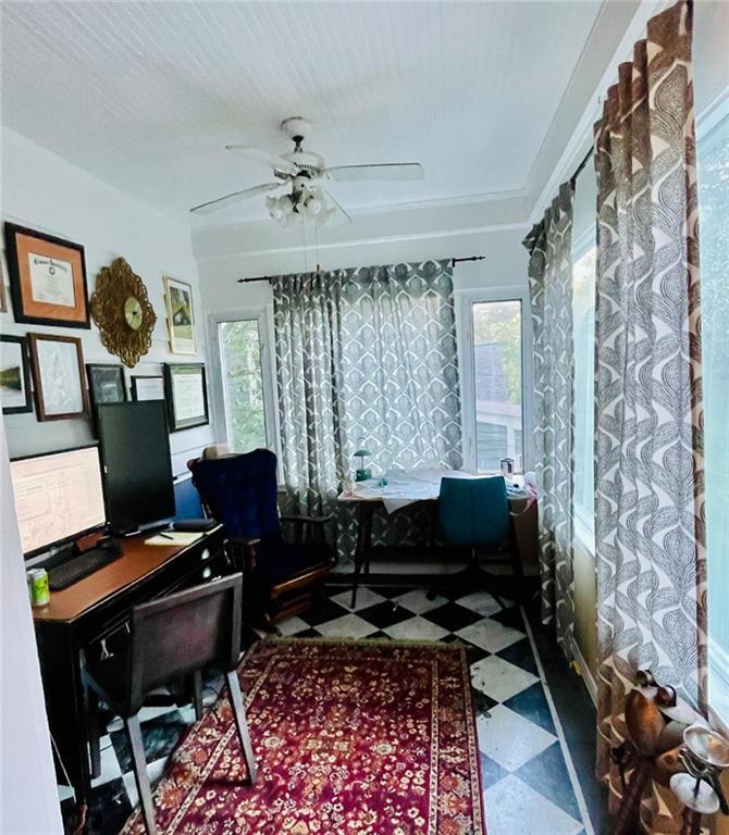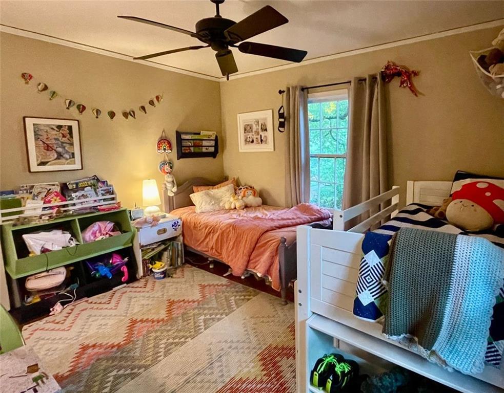 A charming white house with a red front door welcomes you into the living room,which has a sunroom nearby. The kitchen connects to a spacious dining area with French doors that lead to the back deck overlooking a large fenced yard. There are 3 bedrooms with 3 baths,plus an extra bedroom/office/workout space with a bath downstairs. Located in a friendly family neighborhood.