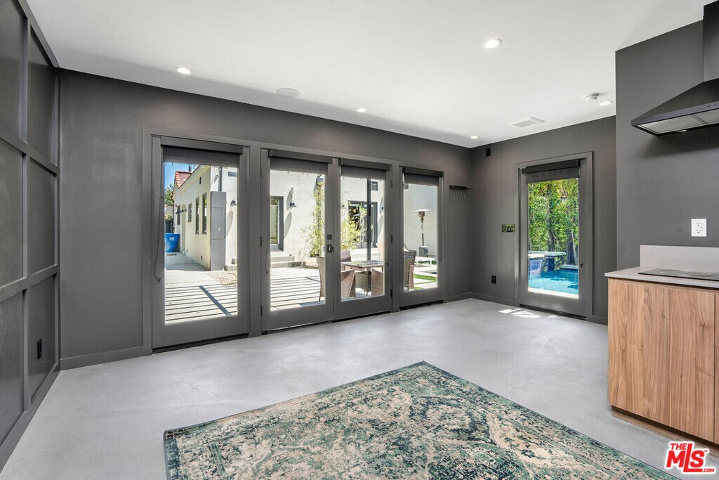 Nestled on a picturesque tree-lined street just west of Fairfax, this exquisitely remodeled Spanish-style bungalow seamlessly blends classic charm with contemporary sophistication. The main residence offers three bedrooms and three and a half bathrooms, complemented by a separate Guest House complete with its own bathroom and kitchenette ideal for guests or additional living space. Designed for both beauty and functionality, the chef's kitchen is a culinary dream, featuring Miele appliances, abundant counter space, and custom cabinetry to meet all your cooking and storage needs. The expansive entertainer's backyard is an oasis of relaxation, boasting a pool, spa, and thoughtfully designed outdoor spaces perfect for gatherings. Every detail of this Spanish masterpiece has been carefully curated, from its state-of-the-art smart systems with remote access to a centralized music system with built-in speakers throughout. Offering ultimate privacy and a prime location, this home is just moments from Melrose Avenue's high-end boutiques and restaurants, The Grove, and the iconic Farmers Market. A rare blend of timeless architecture and modern luxury this is Los Angeles living at its finest. MLS# 25623743
