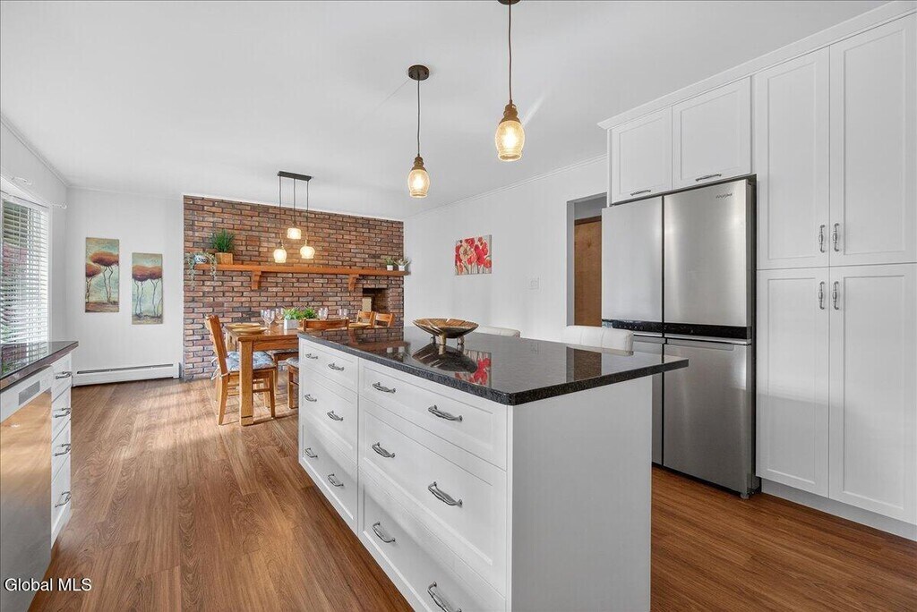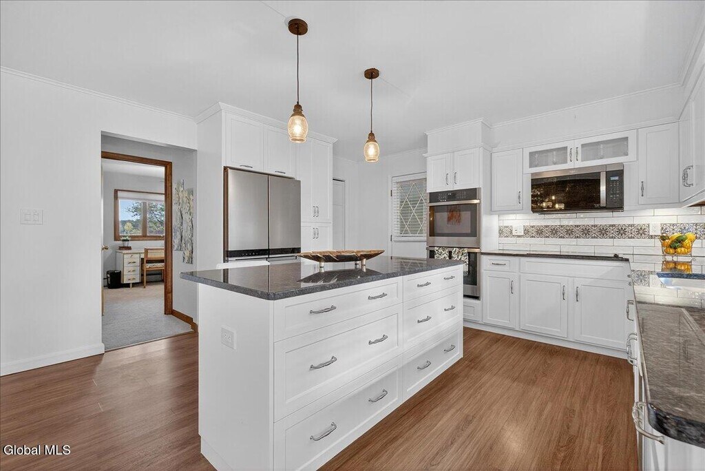 Enjoy the ease of one-level living - this home has been lovingly maintained inside and out! The new Kitchen is sure to impress featuring gorgeous cabinets with pull-outs and soft-close doors and drawers,a large island,granite counters,tile backsplash,all new appliances,and a new combo washer/ventless dryer in the pantry closet. Other recent updates include central air,water heater,carpeting,and lighting. For accessibility,the ensuite Primary Bath has a walk-in shower with bench and grab bars. This property is conveniently located just minutes from the Rte 9 corridor and the Northway,shops,and restaurants. NO DOGS. CATS allowed (2 max). Tenants will have access to a storage space in the basement. Please note: The fire station does not use sirens. MLS ID 202612987