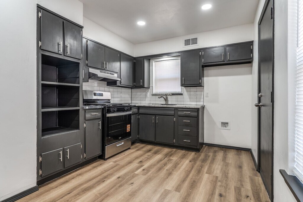 Welcome to this newly remodeled 4-bedroom, 1.5-bathroom home located in the heart of Oklahoma City, OK. This home boasts a range of modern amenities including a gas stove, hardwood flooring, and granite countertops. The large fenced yard provides ample outdoor space for various activities. Inside, you'll find soft close cabinets in the kitchen, adding a touch of luxury and convenience. The home also features an indoor utility room, ceiling fans throughout, and new windows that allow for plenty of natural light. The new HVAC system ensures year-round comfort. This home perfectly combines classic charm with modern upgrades, making it a must-see property.