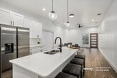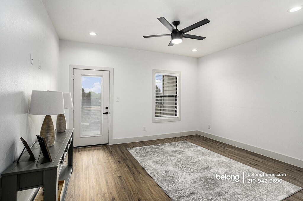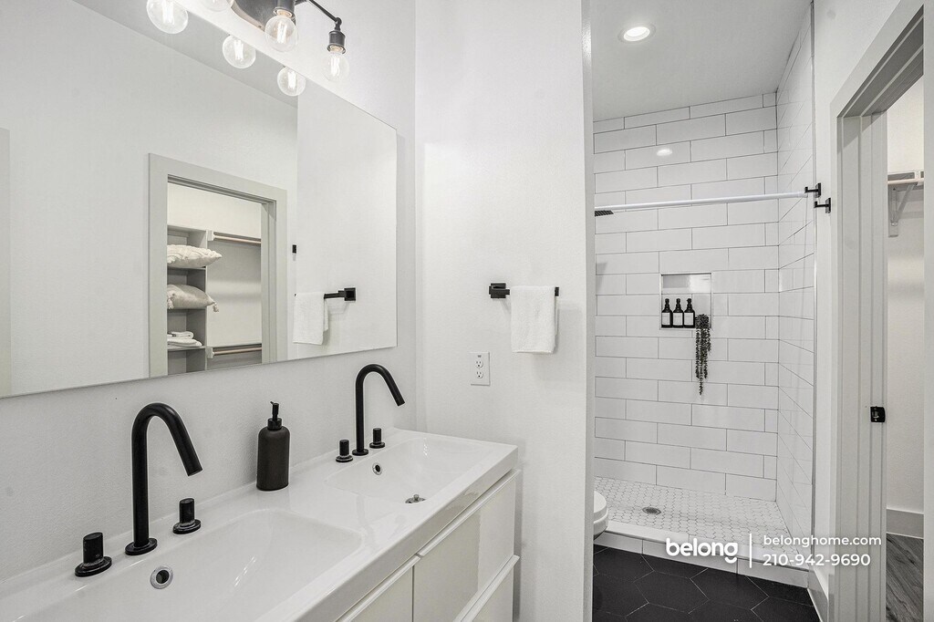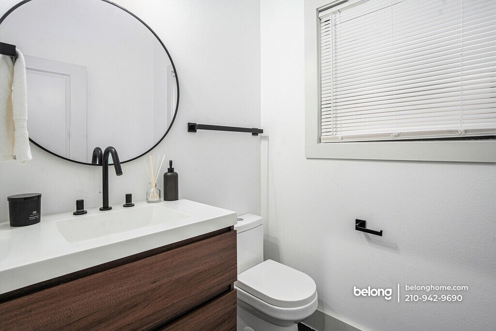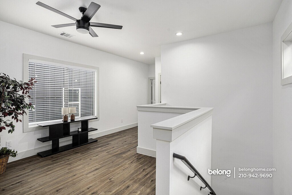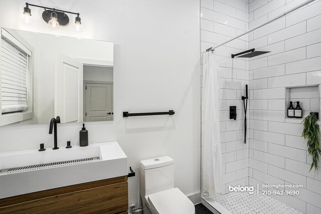 A striking modern structure defines this home, offering three bedrooms, 3.5 baths, and a thoughtful layout designed for both ease and comfort. Step into the living area to find clean lines, warm flooring, and generous wall space that invites you to shape the room exactly the way you want. Central A/C, heat, and a digital thermostat support year-round comfort with simple, intuitive control. Just beyond, the kitchen brings together white cabinetry, stainless-steel appliances, and a long island that accommodates seating, prep, and conversation all at once. Ample storage and wide counters give you the flexibility to cook, host, or keep things wonderfully simple during busy weeks. All three bedrooms sit within well-proportioned spaces, including a primary suite with its own ensuite bath featuring a sleek vanity and a spacious walk-in shower. Two additional full baths and one half bath serve the rest of the home, giving everyone the convenience they need. A covered balcony extends your living space outdoors, creating a private corner for morning coffee or quiet evening breaks. Living in this part of San Antonio places you near excellent everyday conveniences. Nearby, you’ll find H-E-B for groceries, local favorites like Liberty Bar and Feast for dining, and quick access to the River Walk and Hemisfair for open-air recreation. Commuting is simple with I-10 and I-37 close by, connecting you to the wider city within minutes. *This home is photographed with furniture in it, but will be leased UNFURNISHED. *Our homes come as-is with all essentials in working order. Want upgrades? Request it through the Belong app, and our trusted pros will take care of the rest!