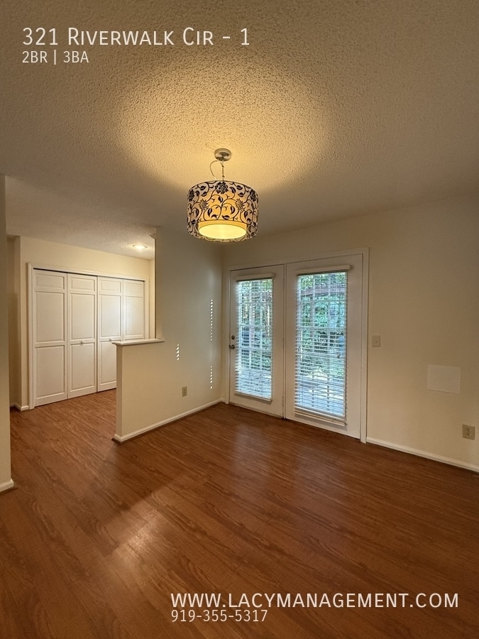 Take a virtual tour! Watch the full property video here: Welcome to Riverwalk Townhomes – where comfort meets convenience in the heart of Cary! “Hurry! Sign and start your lease before November 9th for a 15-month term and receive a rent waiver for November; your rent payments will begin from December 2025. Don't miss out on this limited-time offer!” This beautiful 2-bedroom, 2.5-bathroom townhome offers 1,334 sq. ft. of thoughtfully designed living space. Enjoy modern finishes, spacious interiors, brand-new carpet, and the perfect blend of style and functionality. NO PETS PLEASE. Spend your evenings exploring Downtown Cary's vibrant scene with restaurants, breweries, coffee shops, and boutique shopping. Just minutes away, you'll find Fenton's open-air retail with brand-name stores and dining experiences. Outdoor lovers will appreciate being within 4 miles of multiple parks and playgrounds, including the new Downtown Cary Park, Bond Metro Park, and Marla Dorrel Park. For golf enthusiasts, premier clubs are close by – MacGregor Downs Country Club (3.8 mi), Prestonwood (4.2 mi), and Drive Shack (6.5 mi). Sports and entertainment are nearby, too, with WakeMed Soccer Park, Lenovo Center, and more just minutes away. Daily conveniences are unmatched, with grocery options such as Costco, Harris Teeter, Fresh Market, Publix, Food Lion, and ALDI all within 5 miles. This community offers the perfect mix of modern living and unbeatable location, making it one of Cary's most desirable spots. Don't miss your chance to secure this charming Riverwalk townhome and enjoy everything Cary has to offer. Schedule an online showing at: . Submit your application online at: Resident Benefits: **Get over $100 in monthly benefits for just $49.95 with our Resident Benefits Package! Enjoy valuable services with the flexibility to customize or opt-out *** Application Criteria: a) Gross household income of at least 3 times the rent b) A credit score of 650+ is preferred; we are happy to discuss your situation if your credit score is lower c) No evictions in the last 5 years d) A one-time pet fee of $300 per pet applies. An additional deposit may be required for multiple pets. No monthly pet fee; pet screening is required after application approval: $30 per pet. e) One-time admin fee of $250 required to pay after signing the lease.