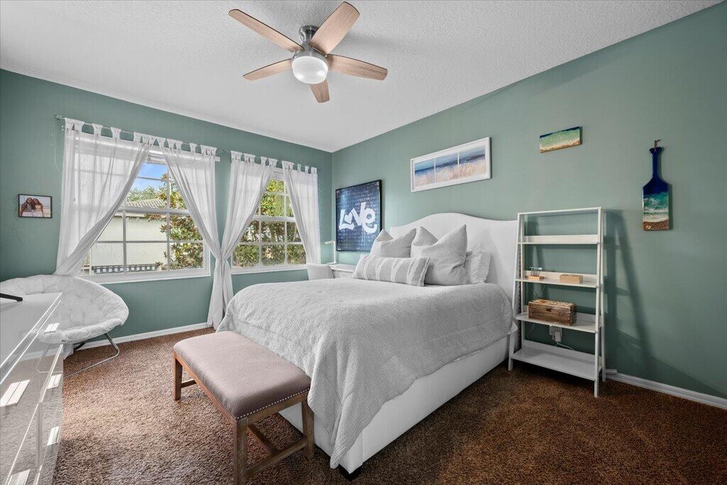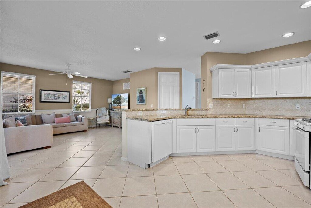 Bright & spacious 3 Bed / 2.5 Bath home with an extended screened patio, perfect for relaxing or entertaining. The open kitchen features granite counters, tile backsplash, gas stove, and eat-in area flowing into the living space with 9ft ceilings and abundant natural light. The primary suite offers a spa-like bath with tub, shower, dual sinks, and walk-in closet. Upstairs laundry and a full bath serve the additional bedrooms. Located in Evergrene, a gated, resort-style community with clubhouse, fitness center, pool, hot tubs, Tiki bar, splash pad, parks, and year-round activities. Just minutes from Juno & Jupiter beaches, shopping, dining, Roger Dean Stadium, PBI Airport, and top-rated schools.