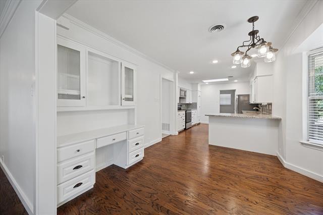 Freshly Renovated Charm on a Prime Corner Lot Backing to Greenbelt This gorgeous, newly renovated home sits on a sprawling corner lot —backing to a peaceful greenbelt for added privacy and views. Brimming with character and thoughtful upgrades, the home features a welcoming front porch, rich hardwood floors, sliding barn doors, and two spacious living areas plus a game room. Enjoy warm designer paint tones, crown molding, skylights, and a dramatic floor-to-ceiling brick fireplace with an oversized mantle that anchors the main living space. The updated farmhouse kitchen offers granite countertops, a ceramic tile backsplash, stainless steel appliances, a sleek undermount sink, and charming bay windows in the breakfast nook. The primary bathroom features an updated walk-in shower, and the home has been refreshed with new landscaping in the front and back. Step outside to relax under the beautiful pergola, enjoy the garden area where you can grow fresh flowers or produce, or escape to the detached workshop—complete with electricity and AC. And with plenty of yard space left to play or entertain, this one truly has it all. Come see it today!