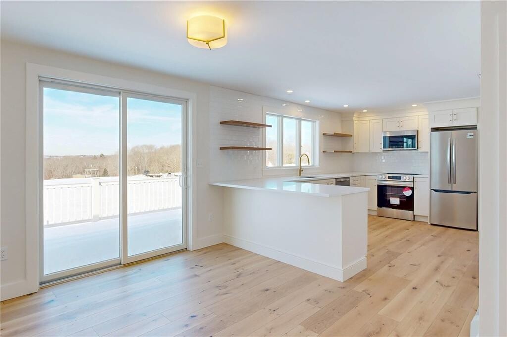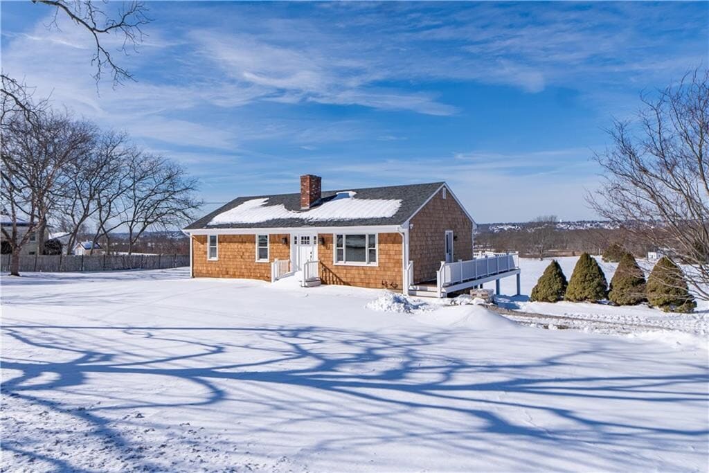 Welcome to 3211 Main Road-this fully renovated three bedroom,one-bath single-level home is move-in ready. The home features a beautiful chef's kitchen/eating area with stone counters and stainless steel appliances along with a warm,inviting living room with fireplace. The modern bathroom offers double sinks,a combination shower/soaking tub,and ample storage. Step outside to the rear deck overlooking the backyard,with sweeping views of open fields,marshes,and the Sakonnet River. Enjoy stunning westerly views and sunsets from this peaceful setting. Additional highlights include oil heat,central air conditioning,and a full unfinished basement offering excellent storage. Ideally located close to Historic Tiverton Four Corners,Tiverton Town Farm,and nearby sandy beaches. Call to schedule a private appointment. MLS ID 1405435