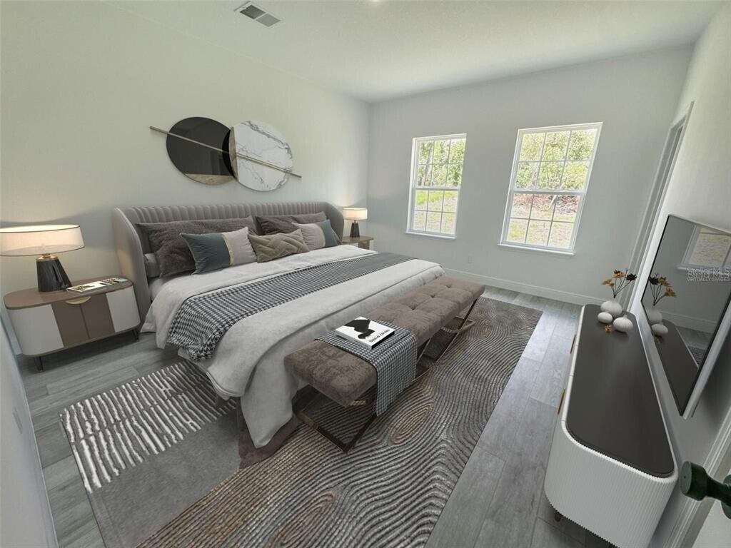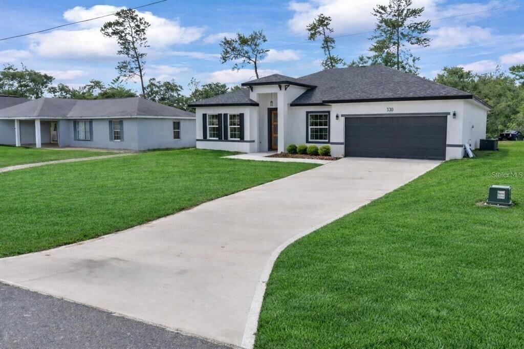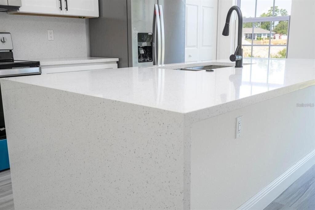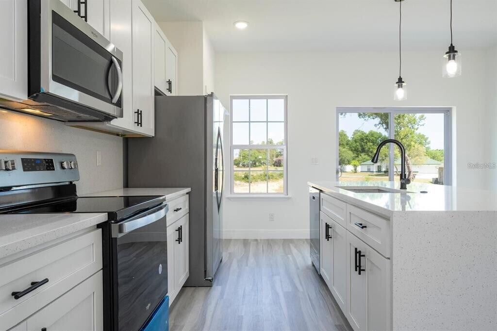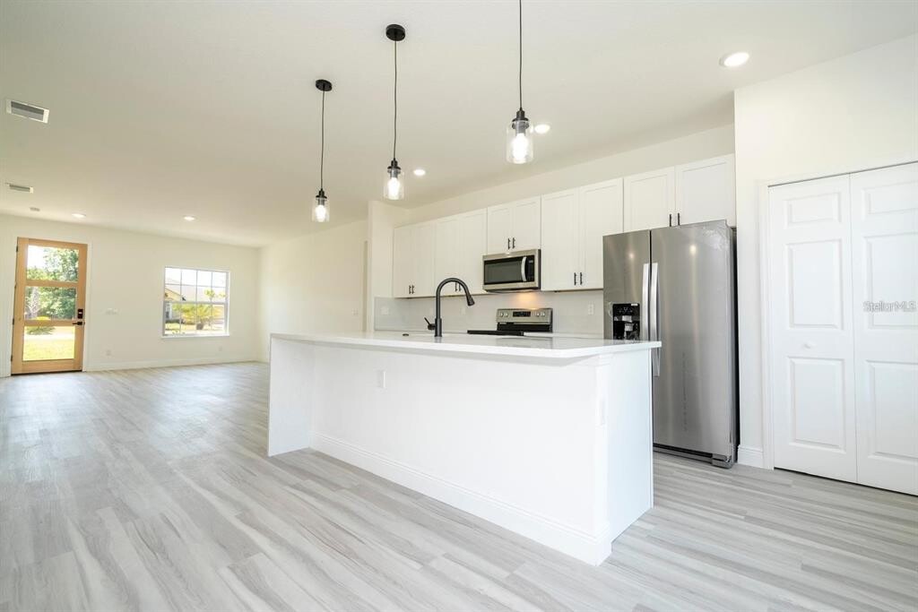 One or more photo(s) has been virtually staged. This charming ranch-style home was thoughtfully designed to offer comfort,space,and functionality in every detail. Located in a rapidly growing area of Ocala,it provides convenience and easy access to shopping,dining,schools,and major roads. Featuring an intelligent and spacious layout,the home offers 4 generous bedrooms,all with built-in closets for maximum organization and comfort. The 2 full bathrooms include custom cabinetry,making daily routines practical and efficient. As you step inside,you’re welcomed by a bright open-concept living space that seamlessly connects the living room,dining area,and kitchen — perfect for relaxing evenings or entertaining guests. The kitchen is a true highlight,featuring a central island,elegant quartz countertops,ample cabinetry,pantry space,and included appliances,combining style and everyday functionality. The inviting front porch is perfect for unwinding,while sliding glass doors provide abundant natural light and easy access to the backyard. A private laundry room offers additional convenience,and the two-car garage includes an automatic door with remote control for added security and comfort. Additional features include durable vinyl flooring throughout — easy to maintain and ideal for busy households. Don’t miss the opportunity to live in a home that blends comfort,space,and a prime location. Schedule your showing today and make this beautiful property your next home! MLS# O6385505