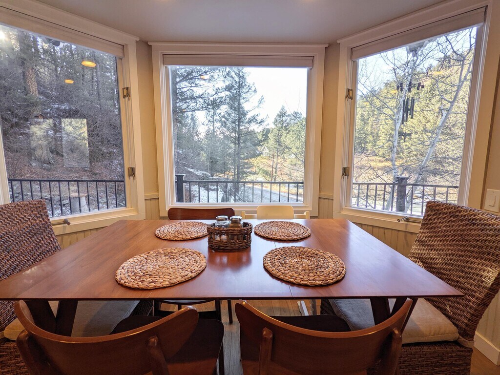 **MOVE-IN SPECIAL: Get Half Off Your First Month's Rent!** Lease terms are negotiable, making this a fantastic opportunity you won't want to miss. Schedule a viewing today! Beautiful high-end, fully updated 3 bed / 2 bath home on idyllic Upper Bear Creek Road with creek views. Fantastic location, 4 Minutes to Evergreen Lake / 6 minutes to Downtown Evergreen / 35 minutes to Denver Union Station. Close to the main roads for commuters but just far enough from the action that it's peaceful. The photos speak for themselves; this home has a ton of character. Walk into the large living room with a beautiful gas fireplace for the ideal mountain ambiance. The living room is quite spacious and has ample room for setting up the space in a way that is perfect for you. Abundant natural light pours through large, picturesque windows. The kitchen/dining room is incredibly spacious too, beautifully updated, and comes furnished with an oversized custom island and matching buffet table. The primary bedroom has a walk-in closet and an en-suite bathroom that is exceptional. There are two additional bedrooms and a second bathroom with two sinks, and a shower. The laundry room is well designed with additional storage space and functions well as a mudroom. The outdoor space is just as lovely as the home itself. The back deck and hidden garden are nestled in a boulder outcropping. The side deck is surrounded by a small aspen grove. In the spring, summer, and fall this property is lush. Lots of wildlife visitors and bird watching. There is not a fully fenced-in yard. Detached two-car garage with ample storage space. $3800 + $50 (water & sewer). Pet rent is $30 a pet. To schedule a showing for this property, please complete a rental application at Gatehouse Properties