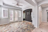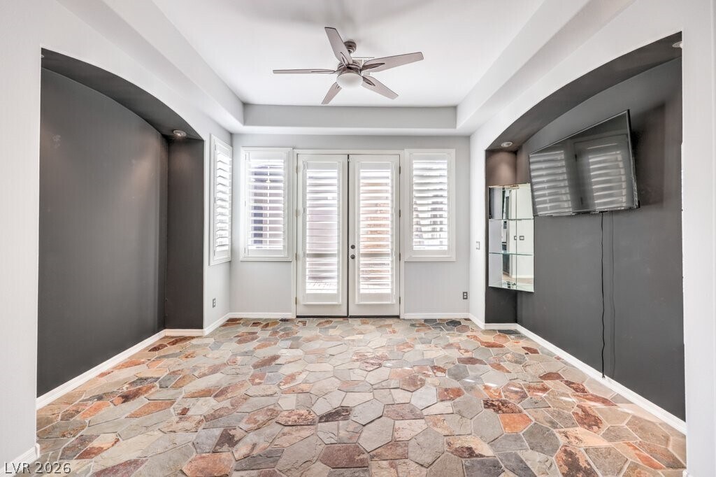 Beautiful single-story home in the heart of Summerlin featuring 3 bedrooms, 2.5 baths, and an open, light-filled floor plan. The gourmet kitchen offers granite counters, a center island, double ovens, and a breakfast bar that opens to a spacious great room with high ceilings and plantation shutters. The primary suite includes a large walk-in closet and spa-style bath with soaking tub and separate shower. Enjoy outdoor living with a private pool and spa, built-in BBQ, and lush landscaping perfect for relaxing or entertaining. A three-car garage, upgraded systems, and a gated community location complete this exceptional home close to top-rated schools, shopping, dining, and parks.