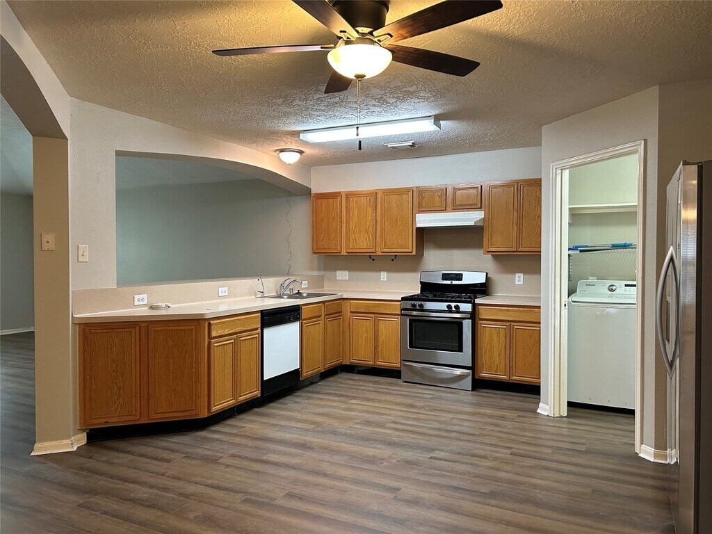 Fabulous one story rental. Open floorplan with high ceilings. Huge den open to kitchen/breakfast and banquet size formal dining. Master retreat is in the back with a spacious bathroom,two large walk-in closet,separate shower and garden tub. Spacious kitchen/breakfast area with gas cooktop. Refrigerator included. Laundry off kitchen,washer/dryer included. The backyard has a nice covered patio. Look out the front to a greenbelt. Double driveway makes parking easy. Tomball Schools. Just a minute to TX-249 (Tomball Parkway) INTERRIOR OF HOME FRESHLY PAINTED. NEW VINYL PLANK FLOORING THROUGHOUT! MLS# 75225634