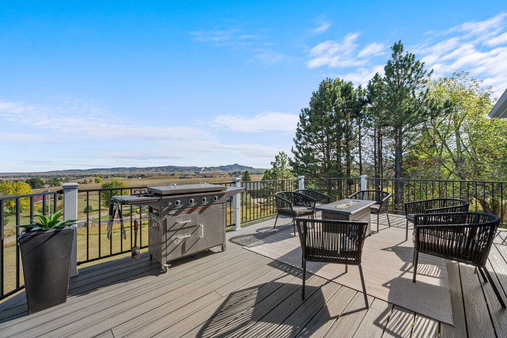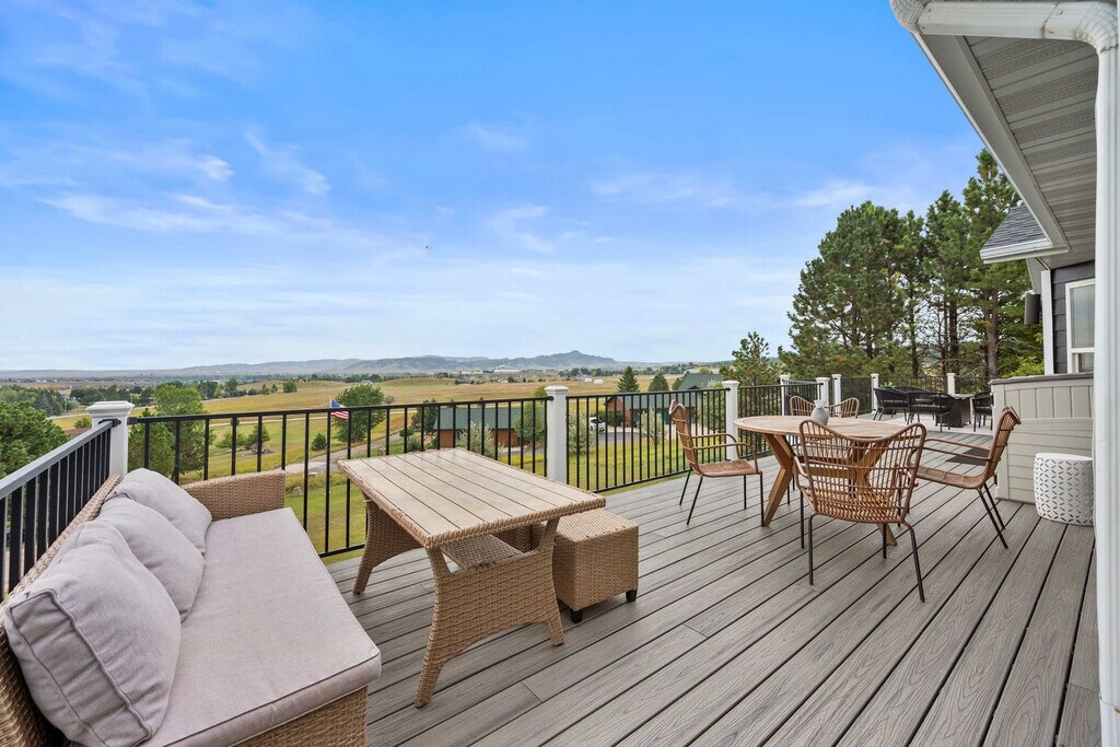 The advertised rate of $5,154/month is the lowest available price, based on a 1 month(s) and 2 day(s) stay with a move-in date of February 17, 2026. Rates vary depending on the duration of stay, season, and other parameters. For exact pricing and additional pricing components, please visit our website and enter your desired move-in and move-out dates. The rate is applicable when billed upfront; it can be higher if billed in multiple payments. Welcome to your luxurious 6-bedroom retreat on 8.5 private acres in the heart of the Black Hills. Feel at home in this expansive hideaway, perfect for family gatherings or group getaways, accommodating up to 18 guests year-round. This home features a chef’s kitchen fully stocked for all your cooking needs, a farmhouse dining table for shared meals, and cozy fireplaces for warmth and ambiance. Enjoy fast Wi-Fi, smart TVs for entertainment, and in-home laundry facilities for convenience. The massive wraparound deck offers seating for everyone and a BBQ grill for outdoor cooking. Relax in the private hot tub and outdoor sauna, or have fun on the two-hoop basketball court. A maximum of 2 pets are allowed for a one-time fee of $150. Minutes from lakes and rivers for boating, fishing, and kayaking, this home is also near Bridal Veil Falls, Spearfish Canyon, Custer State Park, and Needles Highway. Take a short drive to Mount Rushmore, Crazy Horse, and Deadwood. Spearfish’s quaint downtown and historic commercial district, with restaurants, shops, galleries, and art centers, are only a few miles away. Outdoor lovers can easily access Spearfish Canyon and Roughlock Falls (15 mi to the southwest) for hiking, wildlife viewing, and scenic drives. The closest airport is Black Hills Airport (SPF)—a general aviation field just about 4 miles (˜6 km) east of Spearfish. For commercial flights, the nearest major airport is Rapid City Regional Airport (RAP), located approximately 50 miles (˜80 km) southeast of Spearfish. Check-in time is 4:00 PM, and check-out time is 11:00 AM. No parties or events are allowed, and there is a $1,000 fine for violations. No smoking is allowed inside the apartment, and there is a $500 fine for violations. No tampering with noise monitors or cameras is allowed, and there is a $500 fine for violations. Quiet hours are between 10:00 PM and 8:00 AM. [SI]