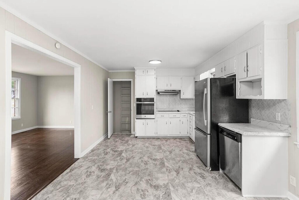 Newly renovated home located in a great neighborhood approx 15 minutes from downtown! Property is listed as a 4 bedroom, though the downstairs bedroom could easily be used as a game room, man cave, additional living area, etc. Notable features...- Original refinished hardwood flooring throughout majority of house- Brand new carpet downstairs and vinyl flooring in kitchen - Brand new countertops and backsplash- Stainless appliances- Both bathrooms are finished in tile and have new toilets- Washer/dryer connections- Lots of storage space- All new light fixtures- Brand new HVAC system- Fresh paint job- Two-car drive-in basement garage with brand new doors- Asphalt driveway with large parking area in back (perfect for a basketball goal too!)