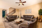 This well-maintained 2-story,3-bedroom,3-bath home is located in the Seville Community and features a spacious open loft area. A full bedroom and bathroom are conveniently located on the first floor. The home includes a new full-size washer and dryer. The kitchen offers attractive cabinetry,granite countertops,stainless steel appliances,and a dedicated dining area ideal for everyday meals. The primary bedroom is generously sized and includes an en-suite bathroom with a split tub and shower,dual vanities,a private toilet room,and a large walk-in closet. Enjoy outdoor living on the private porch,which provides ample space for relaxing or entertaining.