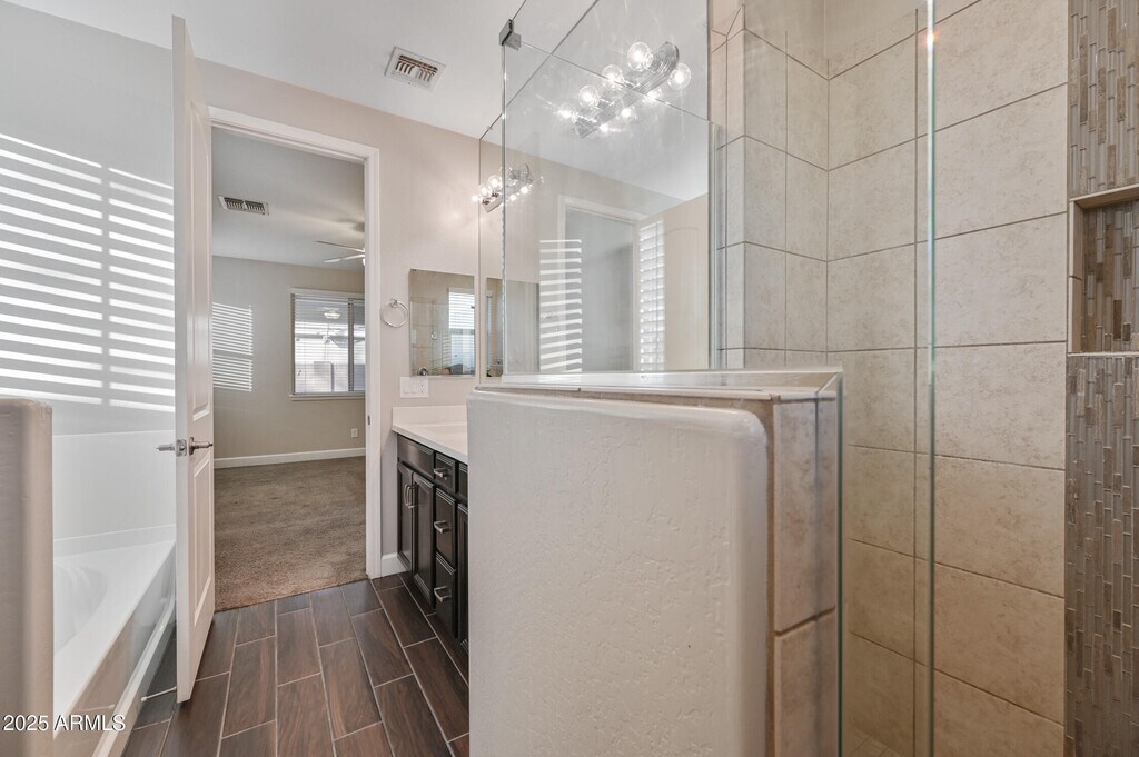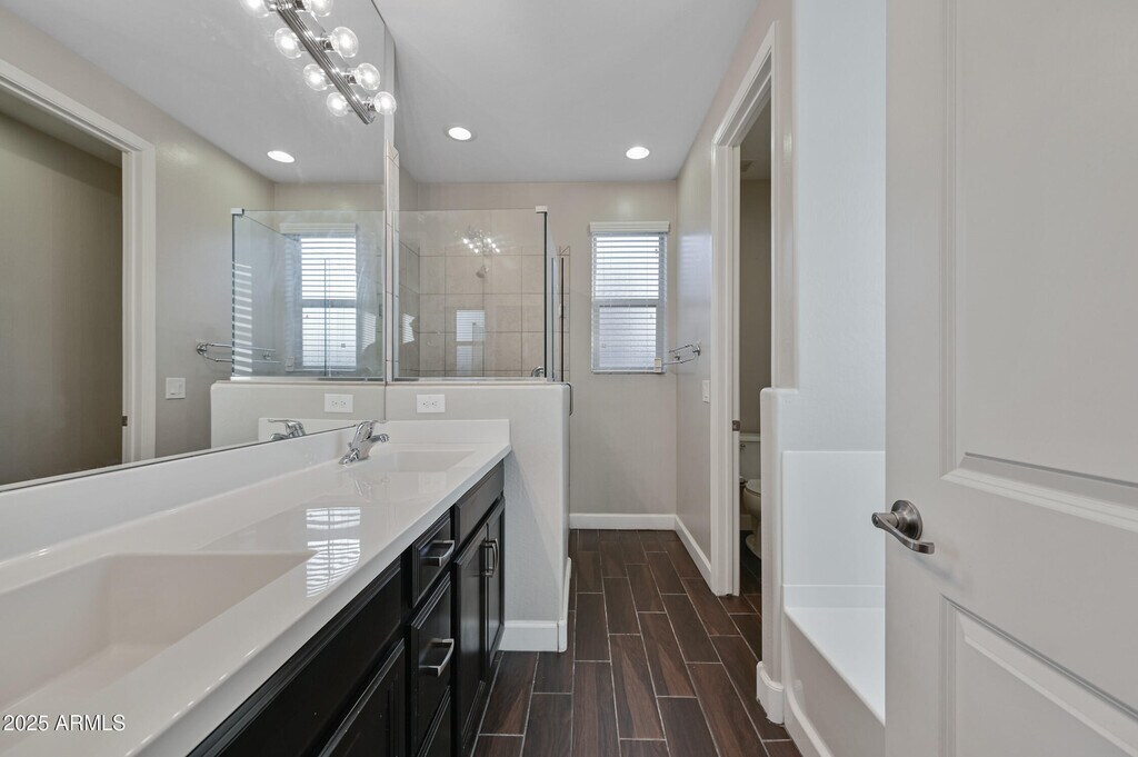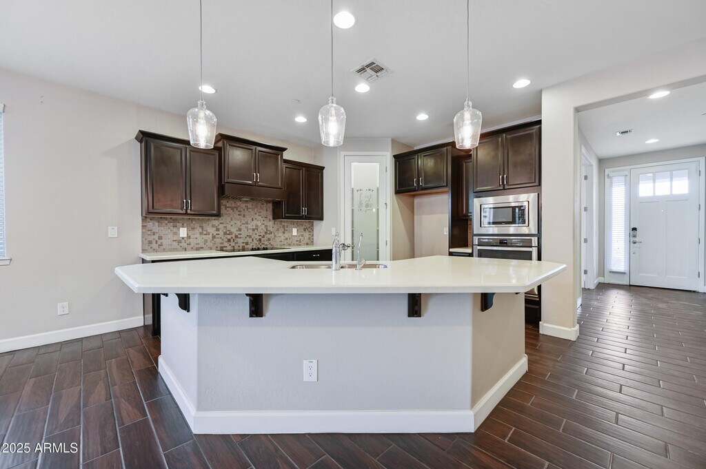 A beautiful 4 bed,2 bath home is now on the market! This property features a 3 car garage,manicured front landscape,and a cozy front porch . Welcoming hallways lead to the captivating great room,which boasts wood-look tile floors,elegant light fixtures,neutral palette,and abundant natural light. The stunning kitchen offers ample cabinetry w/crown moulding,sparkling SS appliances,mosaic tile backsplash,a pantry,and a huge island w/breakfast bar. Washer and Dryer included! End your busy day in this main bedroom,showcasing plush carpet,a sizable closet,and pristine ensuite w/dual sinks. Vast backyard has a relaxing covered patio and tons of possibilities to be a true paradise! Take advantage of the world class amenities!