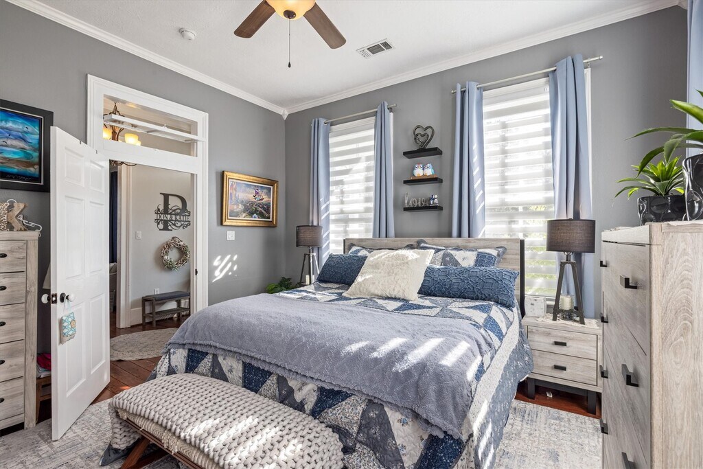 Beautifully restored 4 BR / 2 BA main home The historic Fritz Metzger House (c. 1890) features original cypress floors,high ceilings,and exposed shiplap walls in the upstairs bedrooms,preserving its timeless character. The high ceilings,and abundance of windows gives a cheerful,light-filled ambiance.The kitchen offers Brazilian Black granite countertops,an extra-large stainless steel sink,LG gas range,and new refrigerator. Spacious formal Living and Dining Room with additional den that opens to a rear deck overlooking the fenced backyard,with additional fenced front yard for privacy. Excellent storage throughout with generous closets.This unique property combines historic charm and modern comfort,offering flexibility,function,and island character in the heart of Galveston. New Roof and Fully Insulated 2025. MLS# 13706628