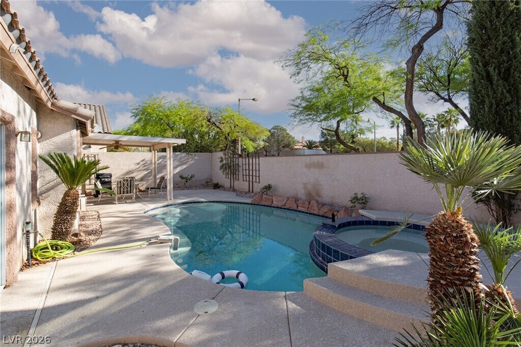 Welcome to this gorgeous single-story home located in the desirable Summerlin neighborhood. This stunning property offers a spacious and comfortable living space with three bedrooms and two bathrooms. The highlight of this home is the inviting pool and spa, perfect for relaxing and enjoying the warm Las Vegas weather. The open concept design features an island kitchen with a breakfast bar, providing ample space for cooking and entertaining. The Summerlin neighborhood offers a vibrant community with access to parks, shopping centers, and dining options.