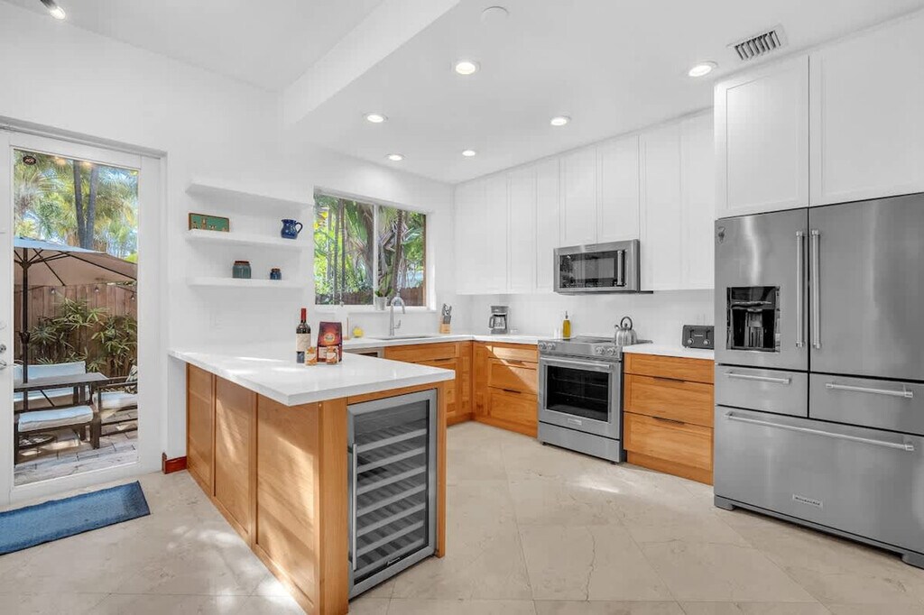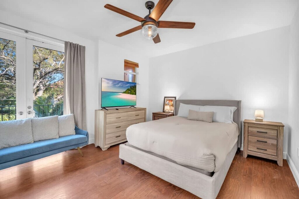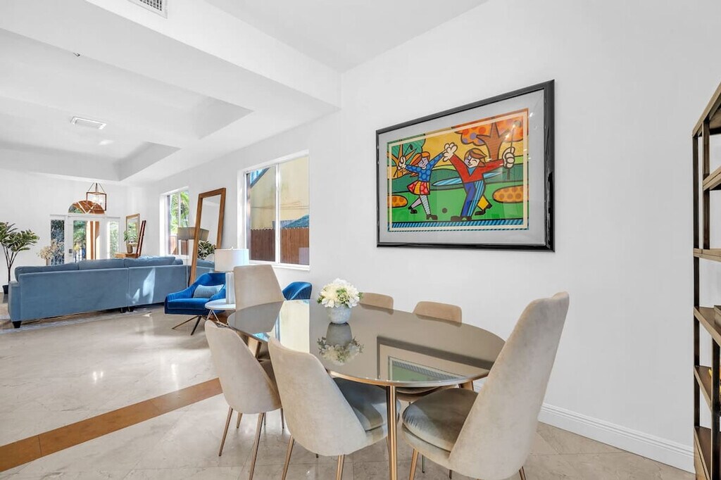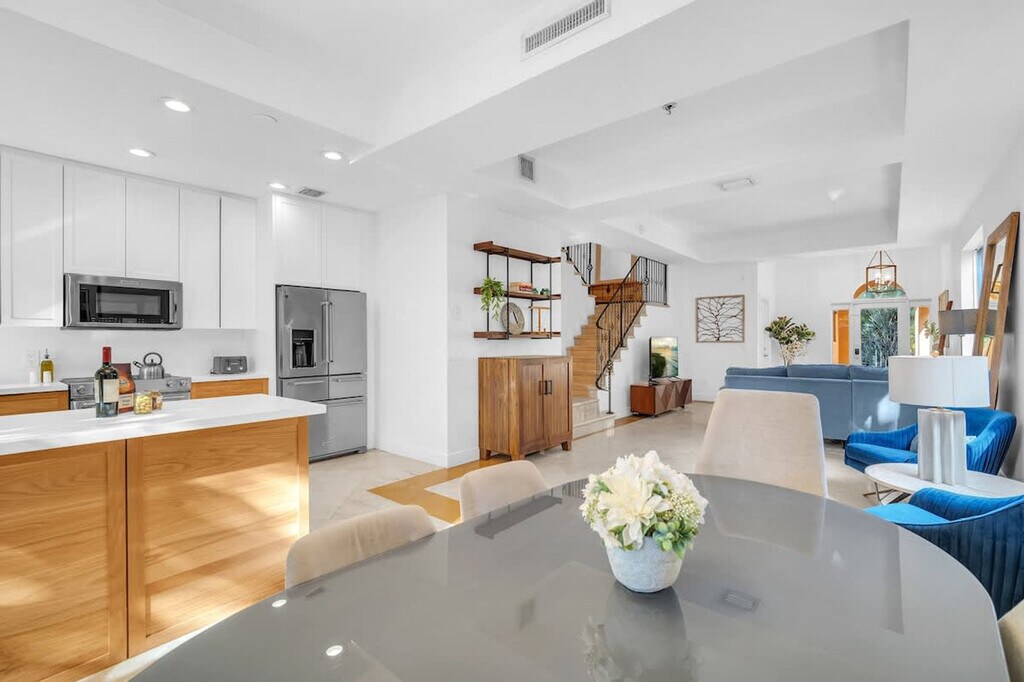 The advertised rate of $9,894/month is the lowest available price, based on a 1 month(s) stay with a move-in date of April 16, 2026. Rates vary depending on the duration of stay, season, and other parameters. For exact pricing and additional pricing components, please visit our website and enter your desired move-in and move-out dates. The rate is applicable when billed upfront; it can be higher if billed in multiple payments. Feel at home in this beautifully designed 3-bedroom, 3.5-bath townhome in the heart of Coconut Grove. This stylish retreat offers comfort, convenience, and a true Coconut Grove experience. Designed with comfort and style in mind, this residence offers spacious living areas, contemporary finishes, and a private rooftop terrace. The living area features modern decor and ample seating. The fully equipped kitchen includes cookware and dining essentials. Fast Wi-Fi is available throughout the home, and central air conditioning ensures comfort in every room. An in-unit washer and dryer are included for convenience. A pet fee of $100 applies. This home is situated in Coconut Grove, a lush, walkable neighborhood known for its tree-lined streets and vibrant local lifestyle. You’ll be just a short stroll from parks, boutiques, waterfront paths, and some of Miami’s best dining. Peacock Park and CocoWalk are easily accessible, offering park space, local dining, and shopping. Despite its peaceful setting, the home is also a short drive from Miami’s top attractions, with Coconut Grove Center a 5-minute drive, Brickell a 10-minute drive, Downtown Miami a 12-minute drive, Key Biscayne a 15-minute drive, Miami International Airport a 15-minute drive, South Beach a 20-minute drive, and Coral Gables a 10-minute drive. No parties or events are allowed. Quiet time is between 10 pm and 6 am. Only registered guests are allowed. Smoking is not allowed inside the home. [SI]