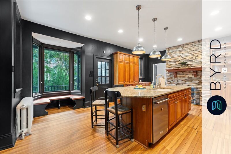 Welcome to this charming and fully updated 5-bedroom, 3-bath home in the heart of Ginter Park, one of Richmond’s most prestigious and historic neighborhoods. With nearly 4,400 sq. ft. of beautifully designed living space, this luxury rental combines timeless character with modern updates — all in a prime Northside location. Step inside to find gorgeous hardwood floors, abundant natural light, and classic architectural details throughout. The formal living and dining rooms are perfect for entertaining, while the family room with custom built-ins provides a cozy retreat. The chef’s kitchen is a standout feature, boasting stone countertops, a large island, upgraded cabinetry, stainless steel appliances, and a striking fireplace. Upstairs, the primary suite offers a walk-in closet, full ensuite bath, and an adjacent bonus room — perfect for an office, nursery, or private lounge. Three additional spacious bedrooms share an updated hall bath, while the third floor offers a fifth bedroom and bonus flex space. Outside, enjoy the wraparound front porch and a tranquil backyard surrounded by mature landscaping — and best of all, lawn maintenance is included in the rent, making this home truly move-in ready.