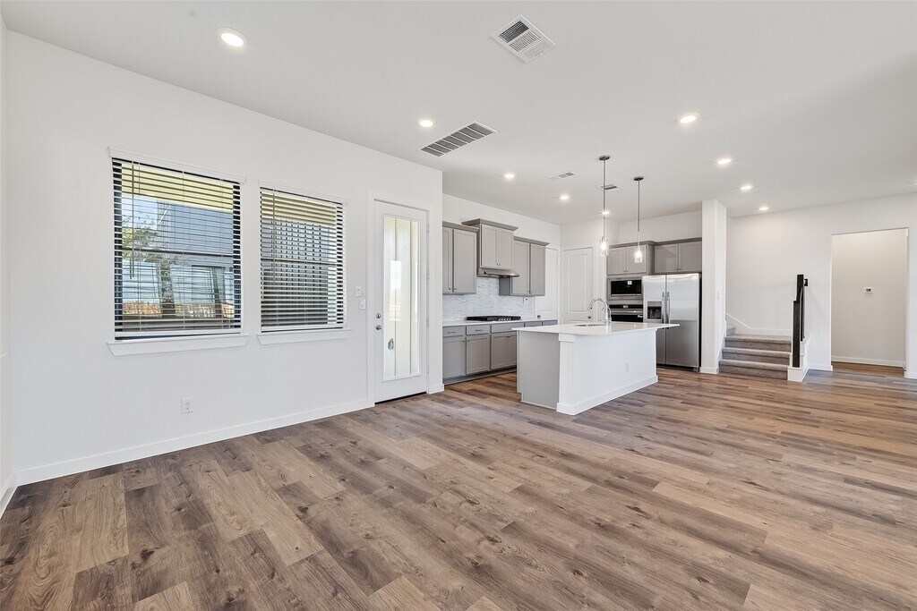 This well-designed single-family home offers a bright and welcoming layout with spacious living and dining areas ideal for everyday comfort. The modern kitchen includes sleek countertops,ample cabinetry,and a functional island perfect for meal prep and gatherings. Large windows provide abundant natural light throughout the home. Well-sized bedrooms and contemporary bathrooms offer comfort and convenience for the entire household. The private backyard provides space for outdoor relaxation and activities. Located in the Indigo community,the home benefits from nearby parks,walking areas,and convenient access to major roads,shopping,and dining options. MLS# 30690610
