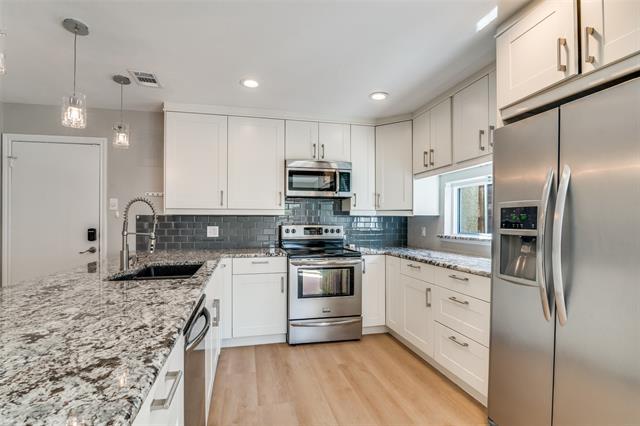 Don't miss this updated condo directly across from Cole Park! This completely remodeled end-unit is full of natural light and upgrades include new LVP flooring, stone fireplace, white cabinetry, granite kitchen counters, stainless steel appliances. Downstairs you will find the kitchen open to the dining area and a large living room. There is also a wet bar, half bath and laundry area. Charming French doors lead out to the private patio area. The spacious primary bedroom is located upstairs with an ensuite bath featuring double vanities and marble shower. There is also a large second bedroom as well as full bath upstairs as well as a charming loft area with built ins that is perfect for a home office or reading nook. Prime location near Uptown, West Village, Knox-Henderson areas with plenty of shopping and dining. This unit is ready for immediate move in.